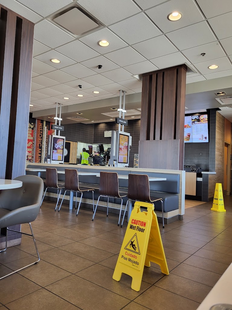 First, we tried to maneuver our way through the checkout online. Inside the building, it was about 60 degrees in there. Finally we went to order to a physical person, he was very kind and helpful. It took about 30 minutes to get the food. It tasted like mc donalds.