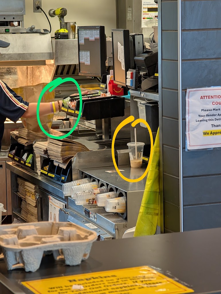 Previous visit: What's up with the employees wearing Kandi and keeping their personal drinks in the work space? You can't properly wash Kandi while serving food.