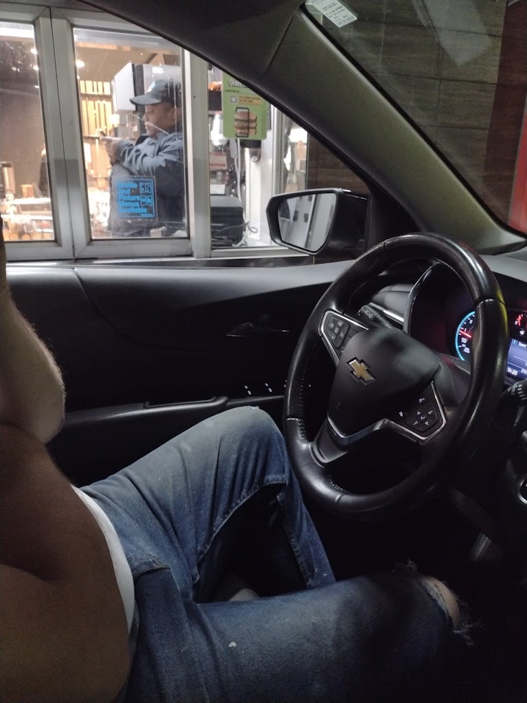 Convenient location, fast service during prime time. Though staff was not wearing masks, Indoor is still closed (Oct 2021) but a large parking lot and trash cans outside helped.