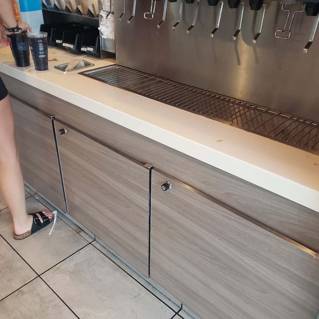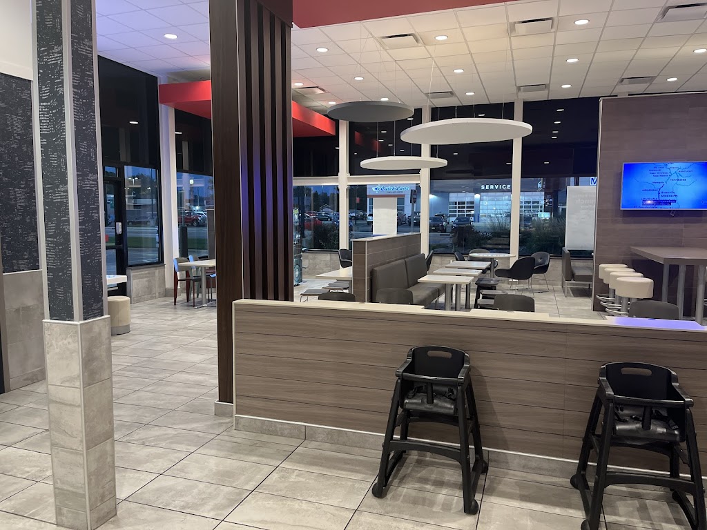 Shining floors, happy employees, in a brand new store. This McDonald’s was very modern with several kiosks. Unfortunately, no drink refill machines out in the dining area. Perhaps you need to ask. We skipped the refills this time. It was so new there weren’t very many customers, but this is only the beginning!