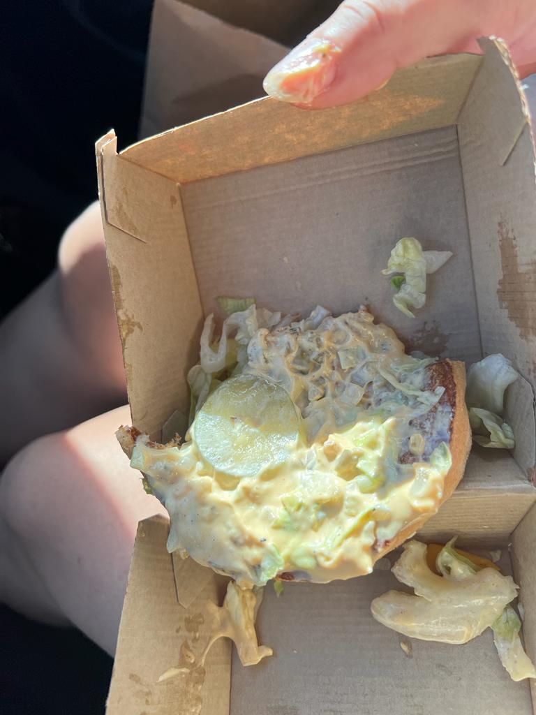 I ordered a McChicken meal it was just the chicken and a bun nothing inside and the chicken was burnt and about the size of a 50-cent piece not worth $8
