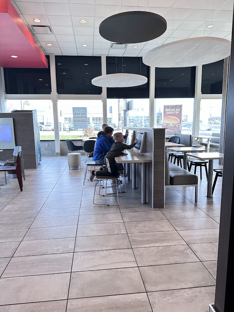 This is a fairly new building. We arrived at 12:45 pm. It was a nice summer day, but it was about 61° inside! They clearly didn't want anybody staying in there! Plus, the place was filthy! I've never seen a McDonald's this dirty! There were fruit flies hanging around the ketchup dispenser!