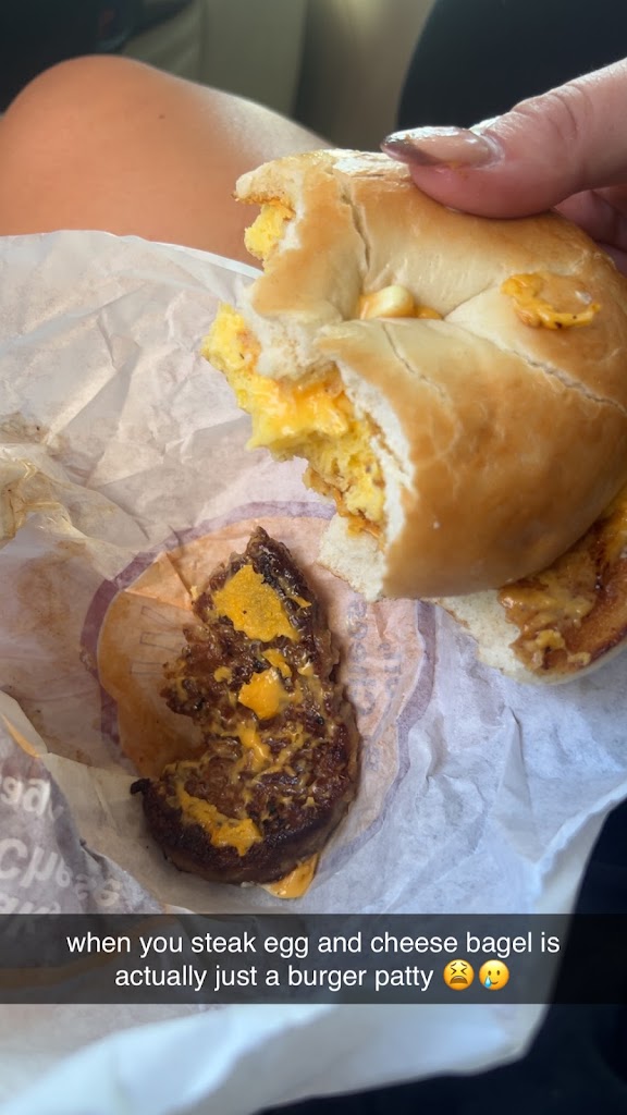 Steak egg and cheese bagel ($9.00 by the way) was just a hamburger patty with egg and cheese…lol. hashbrown was good. they also gave my friend orange juice instead of a hi-c which we fixed.