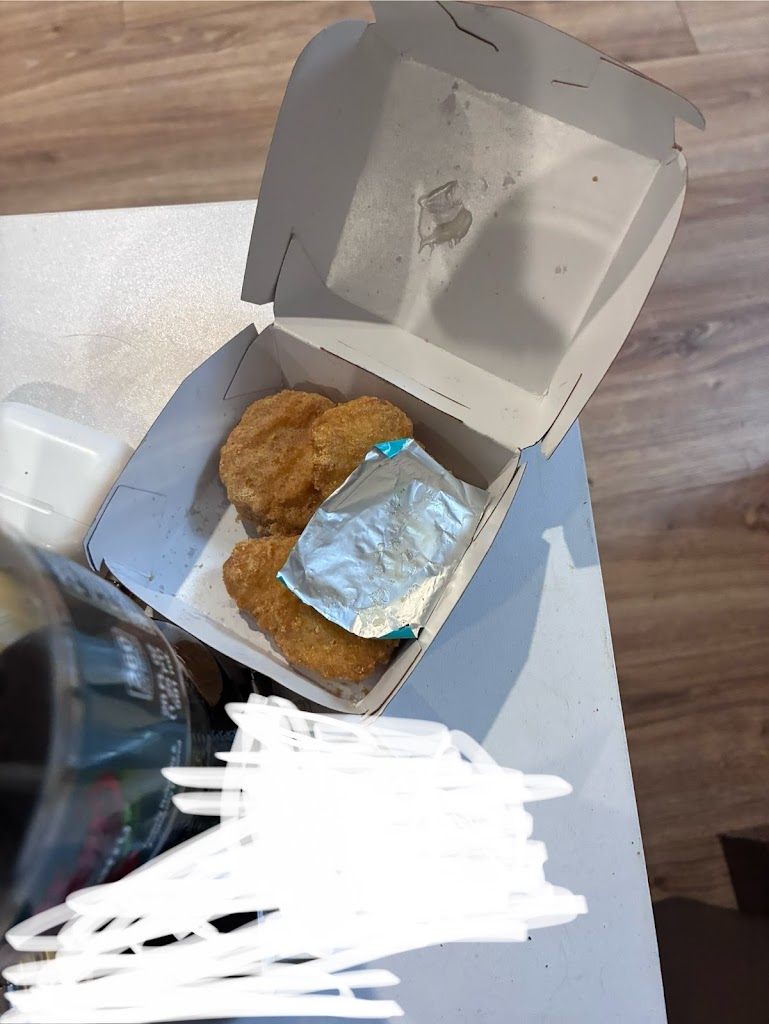 3. Ordered 2 crispy chicken meals and couple mcdoubles. Chicken was so dry and old they looked like mini burgers. Literally I thought they were burgers not chciken. If it's older a little dissapointing I just eat it, whatever. But they were like jerky. Not close to edible.