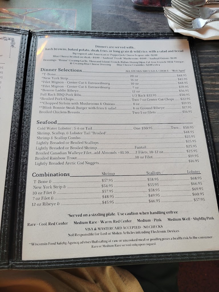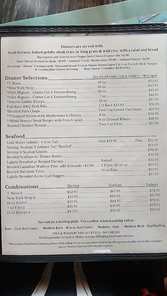90% of my ribeye is in the freezer. I'm too cheap to throw out such an expensive steak but I really don't want anything to do with it. I gave the remaining half of my so-so lobster tail to the dog. He got the cheeseburger too because my niece rightly refused to eat the leftover half. There are way too many excellent supper clubs in the northwoods to waste your money at Blink Bonnie.