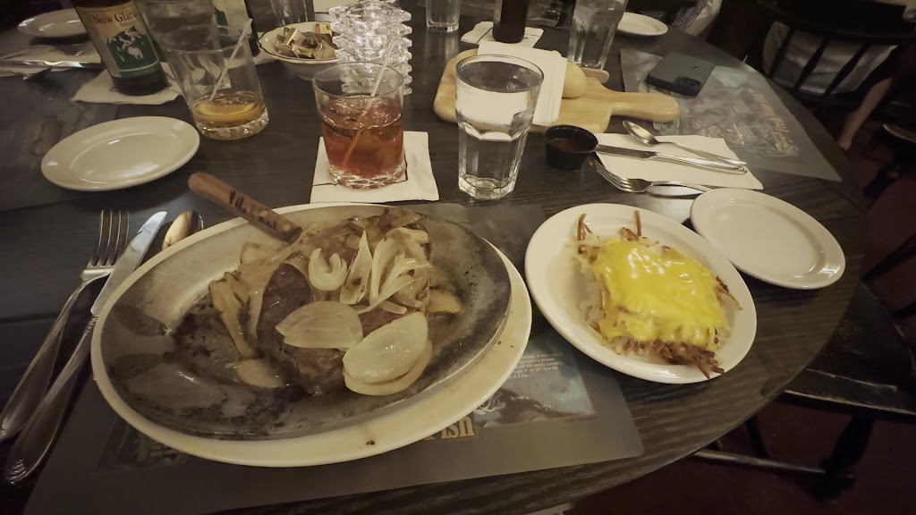 This place does one thing exceptionally well — steak. I ordered the NY Strip and my wife got the filet. It came out searing flippin’ hot and was a production in of itself. Mine was cooked perfect (medium rare) and served with a salad and potato. I opted for hash browns smothered in cheese and since I love steakhouses with steak toppings — I was delighted to get grilled mushrooms and onions on my Strip.