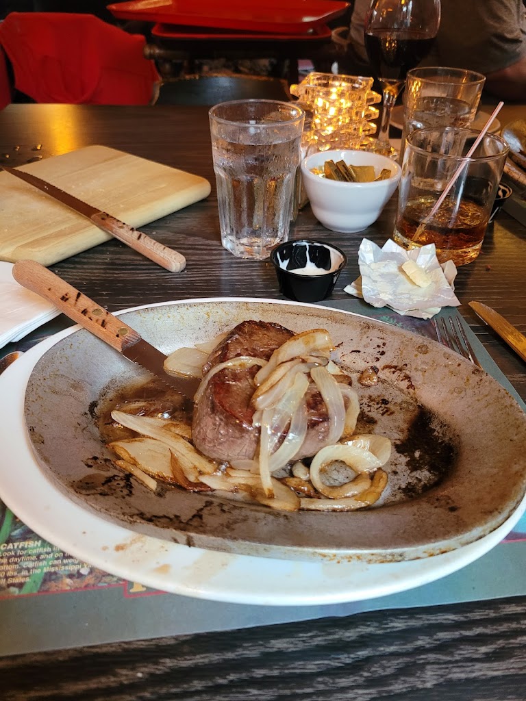 This is a place for steak, ribeye, filet, strip steaks they do it all. Food comes right off the grill and is served still sizzling on a metal plattet. We had ribeye and they were outstanding. Don't miss out on the old fashions either.