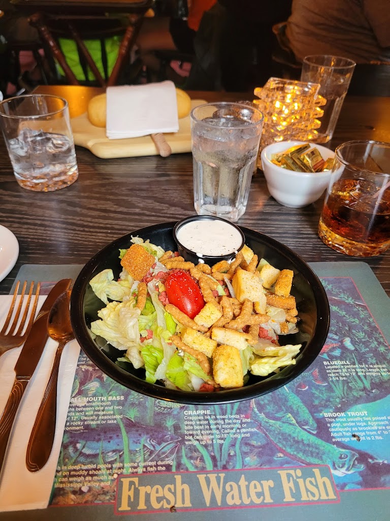 Bread came out piping hot and crispy. Salads are a nice starter but agreed with other reviewers it’s an iceberg lettuce based salad dressed up with bacon bits, croutons, and crunchy pretzel type bits. House dressing was a garlic ranch. Ordered a 7 oz filet mingon and ribeye. The filet was tender and cooked well but if you’re looking for your seasoned, Chicago style steakhouse flair, look elsewhere. The ribeye wouldn’t be a repeat order based on cut and lack of seasoning. Had an added order of broiled shrimp on the side of ribeye and this was this guest’s favorite part of the meal being seasoned and cooked well. Ordered steak fries and baked potato as sides which were pretty ordinary. Saw several orders of hashbrowns so these likely are the popular choice of potato.