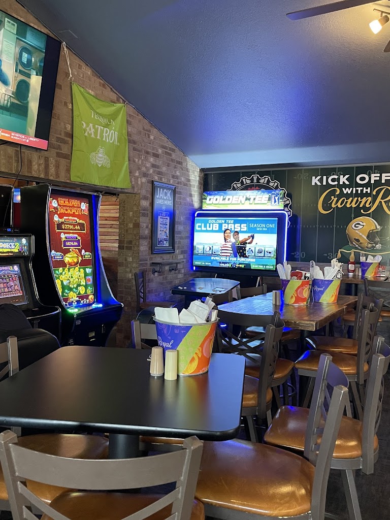 Had a pretty unpleasant experience all around. There were servers playing bar slots instead of doing their job. Tables had to order from the bar. Several dirty tables around that had not been cleaned up. One of our drinks was made wrong. Food was just mediocre bar food and took long. It was super hot inside for no reason. Dark and dingy in the eating area, and could smell smoke and weed.