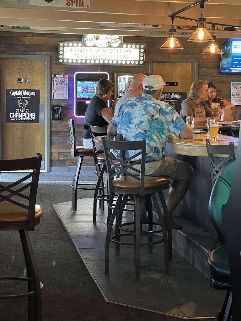 Atmosphere:This is a nice little bar in the lake country of Wisconsin and honestly what it has to offer is not substantially different than most of your Wisconsin bars. Full rail of the standard liquor and about eight taps and fridges full of most of the top name brand beers. They're at least four or five digital slot machines and two pull tab machines. A whole room in the back that's enclosed for smoking during the winter. An ATM and a dart board.