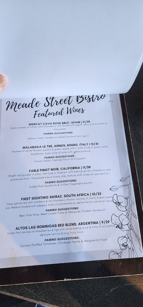 Returned in September 2025, still love the relaxing ambiance and the great food. This time ordered the Maui wowi flatbread pizza - YUM! The Hawaiian pizza with added jalapenos and more brought out the flavors in a spectacular way. The desserts are amazing. Our table ordered the apple dumpling with ice cream, so good it's hard to share, and the dessert lasagna with peanut butter and chocolate, which was so good one of our party licked the plate clean. Still highly recommend Meade Street Bistro.