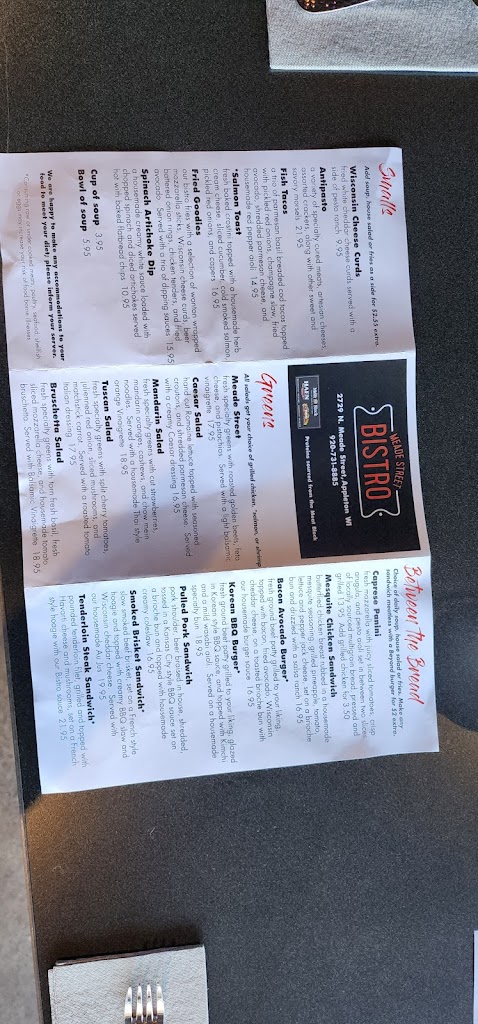We chatted with the Owner and she is a wonderful person (she actually was the one waiting on us). Appleton is lucky to have a wonderful, local, cooked from scratch bistro like this Meade Street Bistro!