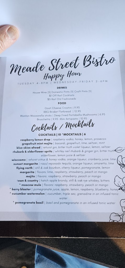 Gave Meade Street Bistro a try on my birthday lunch and the food was delicious and will come again. The Fish Tacos & Chicken Pesto Ranch Sandwich is a must. Also server Danielle did a great job. Thank you!