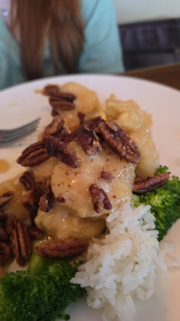Super yummy shrimp. And veggies in a brown sauce. A little disappointed in the pan fried noodle. Like chow mein but crunchy, cold, dry and very thin..maybe deep fried? Not soft and pan fried like most. But entree was very tasty!