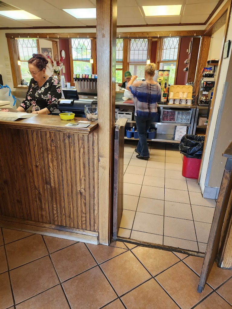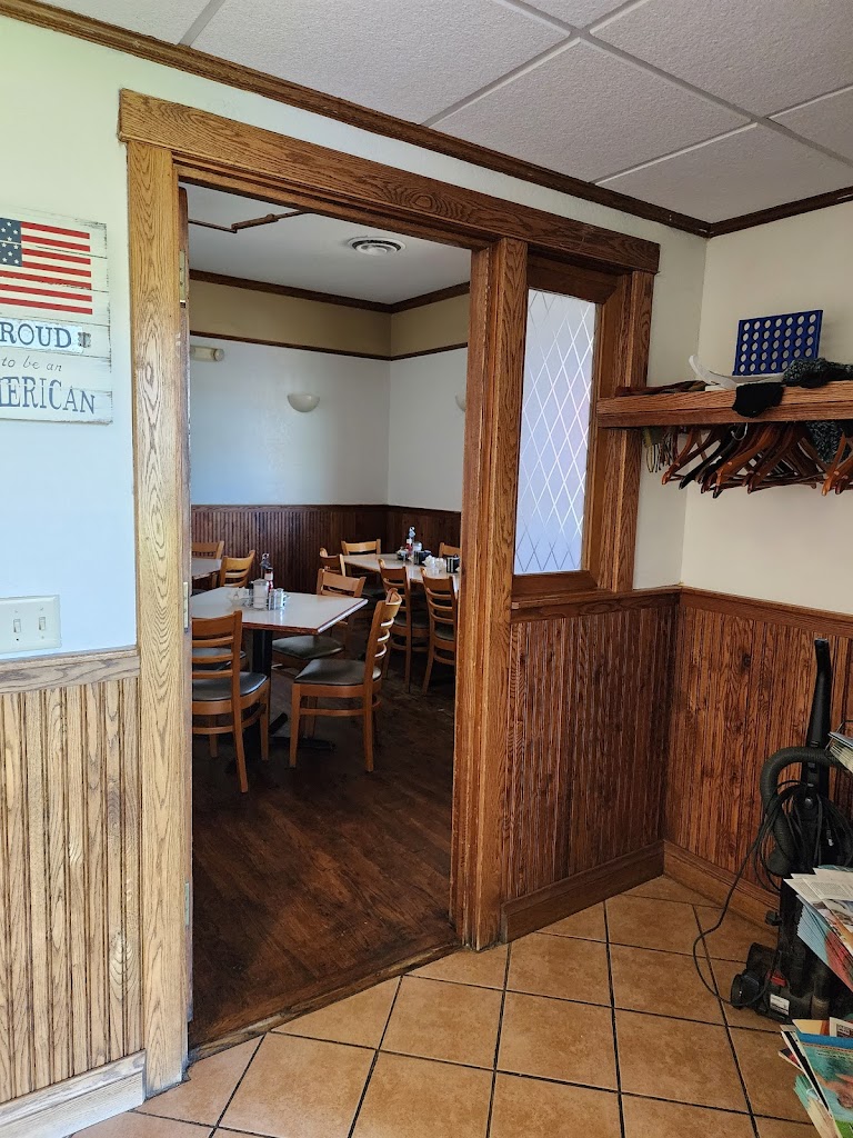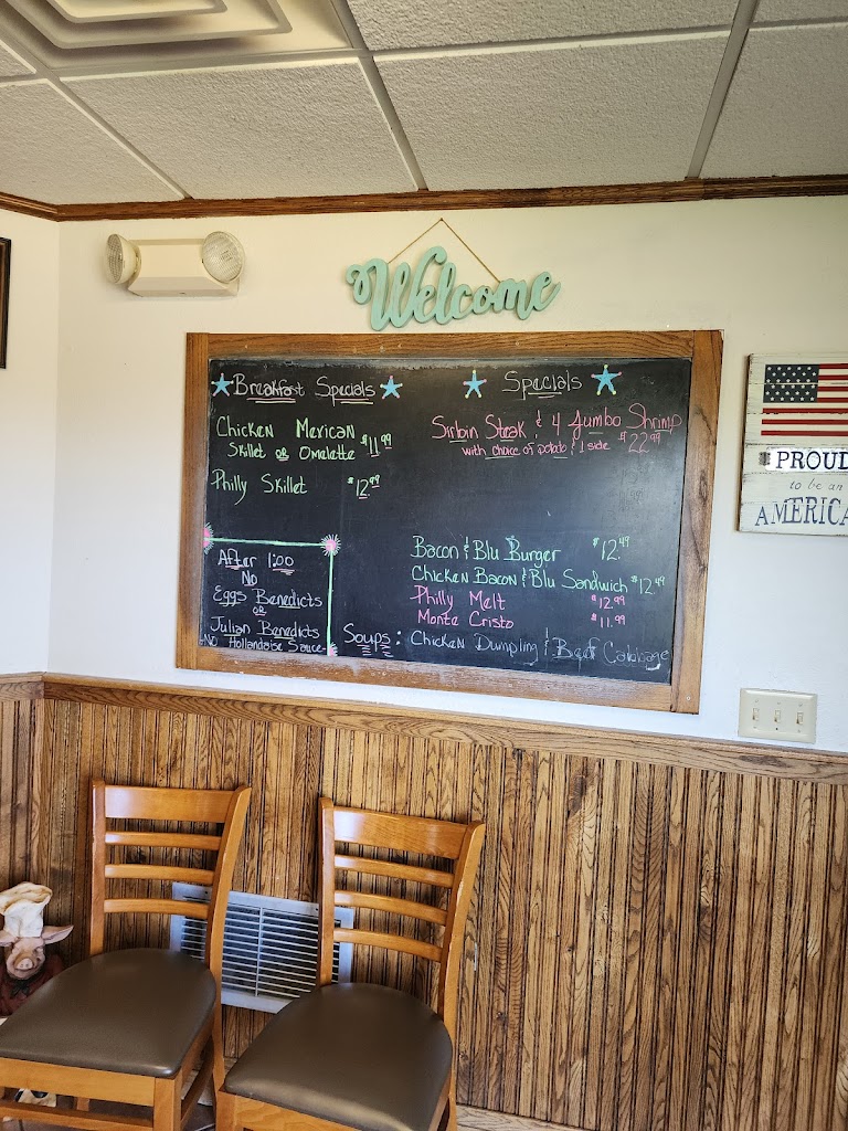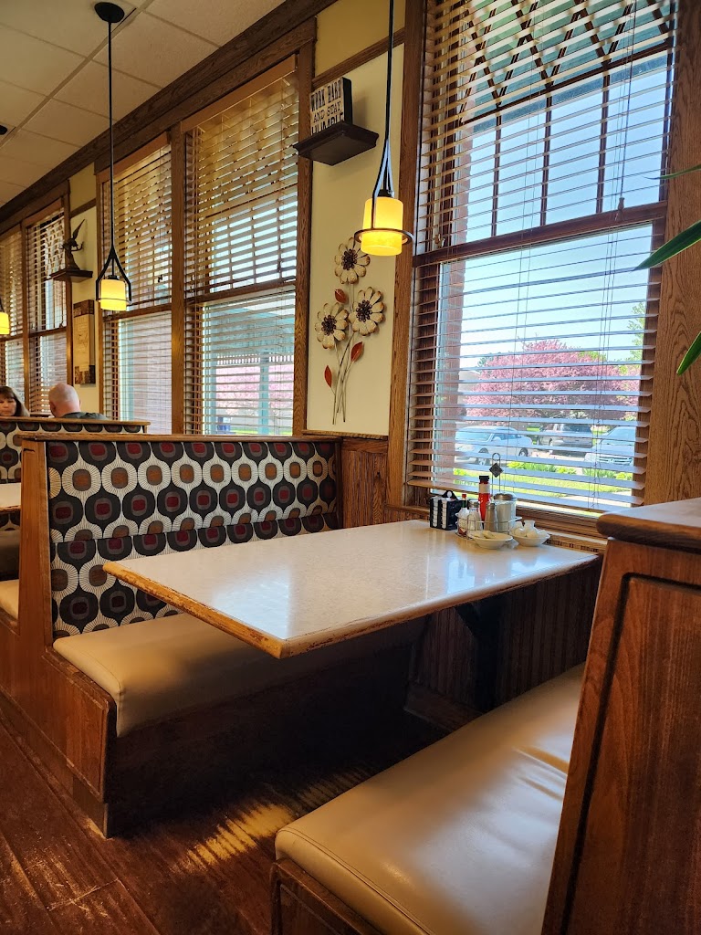 Such a cute family-friendly diner! We were seated promptly, our waitress was so kind, quick on coffee refills, and food came out pretty fast! I was visiting from Indiana, and really loved the small-town vibe here. The tables and chairs were very clean and each table was well stocked on napkins, creamers and sugar packets.