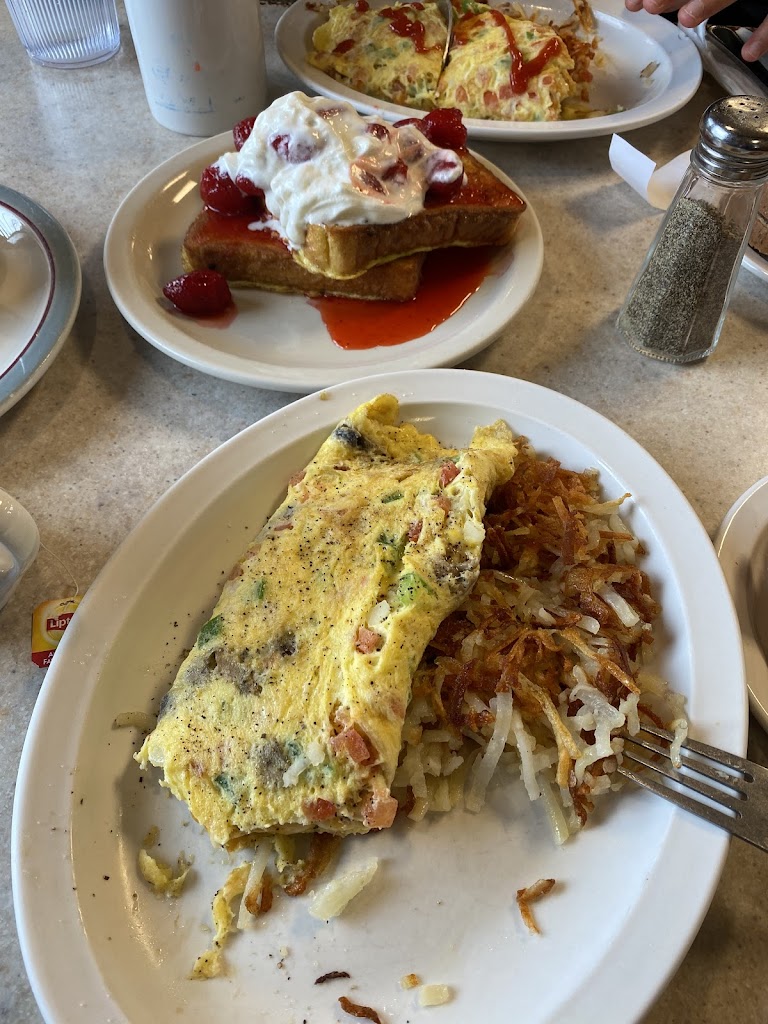 Good breakfast diner, not easy to find from highway. Pancakes & omeletes recommended