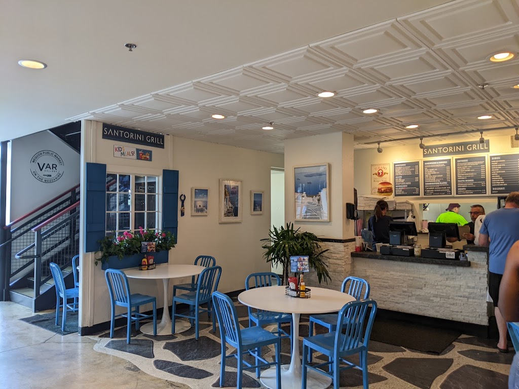 Great food and lots of options! I got food from the Santorini Grill and ice cream from Purple Door and both were great. We wound up also going to St. Paul’s for fish and Screaming Tuna for sushi later. Overall, they have lots of great restaurants with great food.