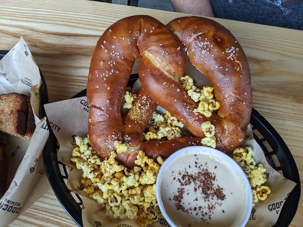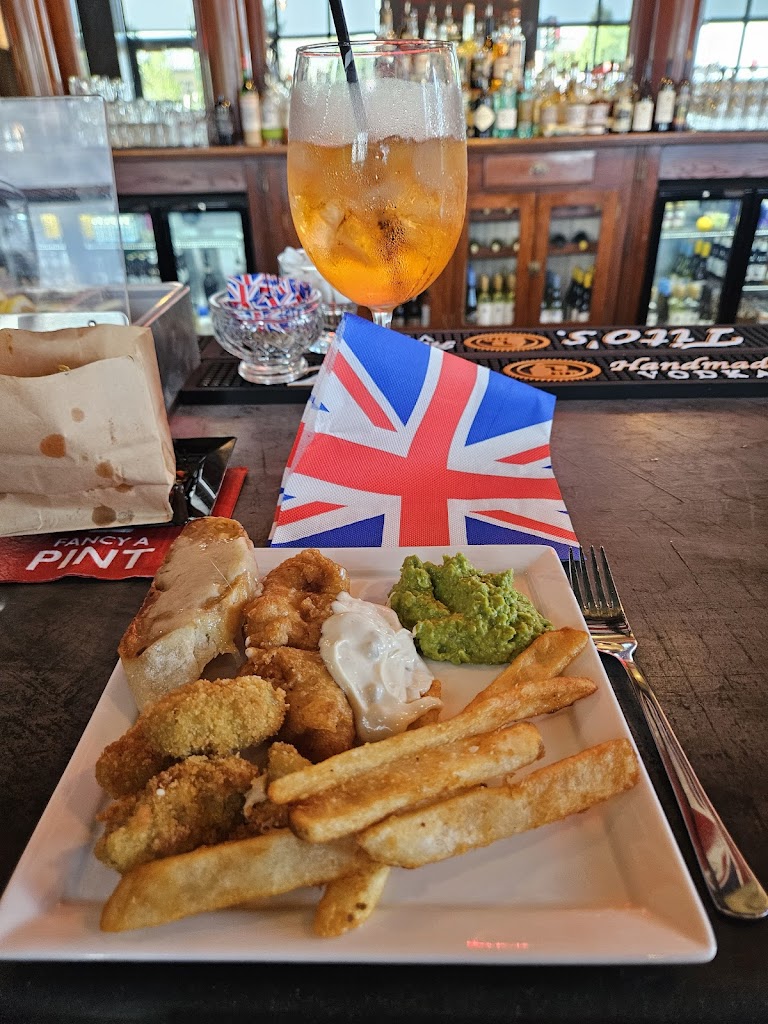 Many different types of food available for individual variety for group/family members. There is indoor tables and outdoor patio with tables. I personally enjoyed the English Pub food.