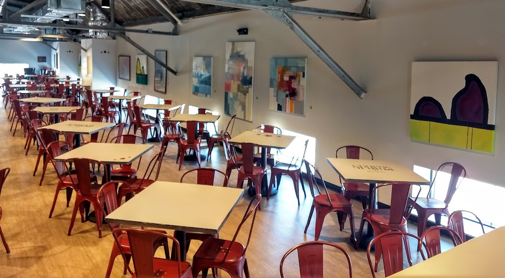 Open concept and limited food places. It was a spacious sufficient seating area.
