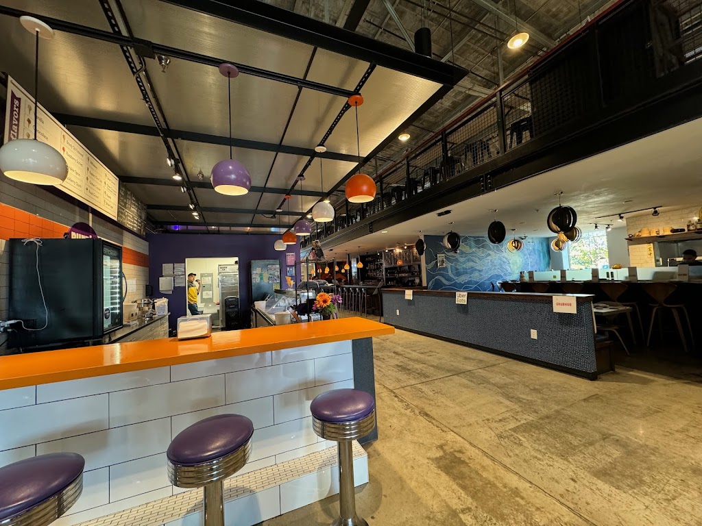 City prices and industrial vibe. Colorful surroundings, several great food choices and a decent amount of seating both upstairs and outside. Hoping to see the place filled with more vendors! Fun lunch spot for a group.