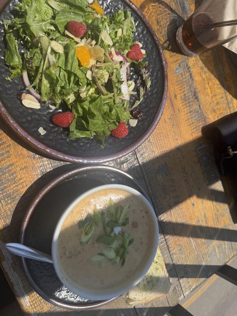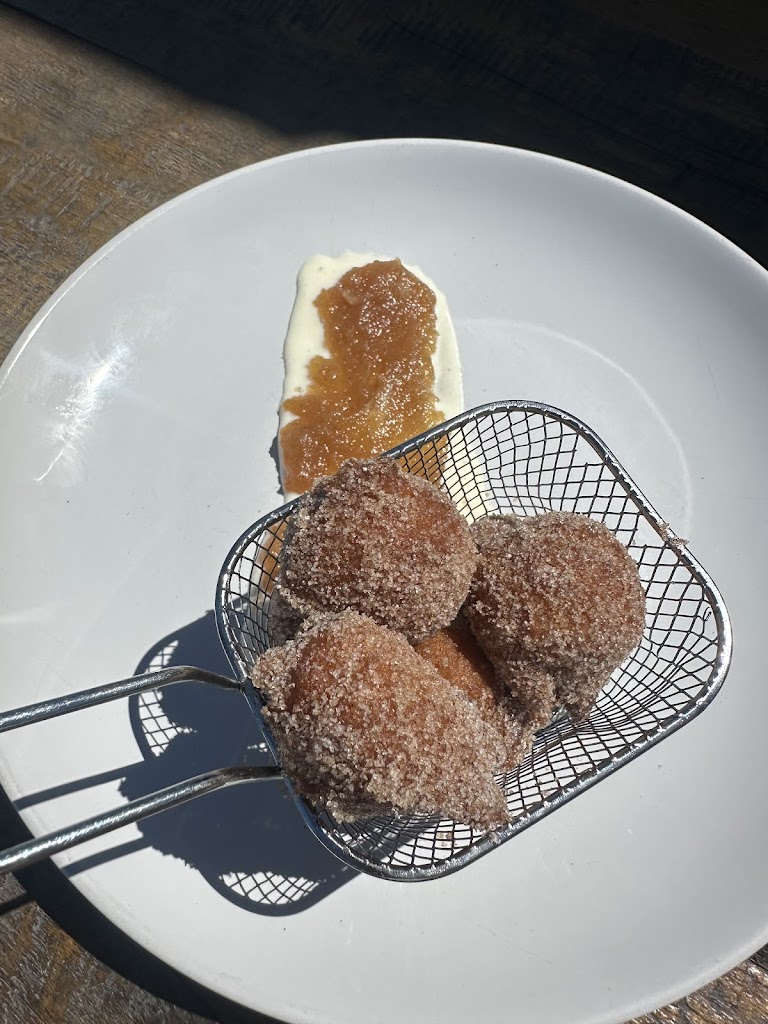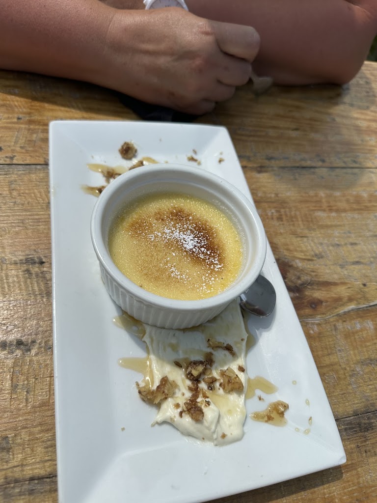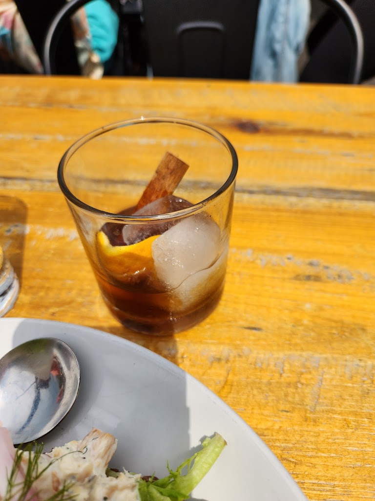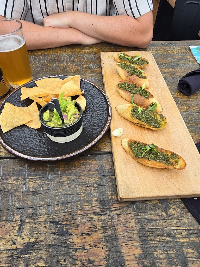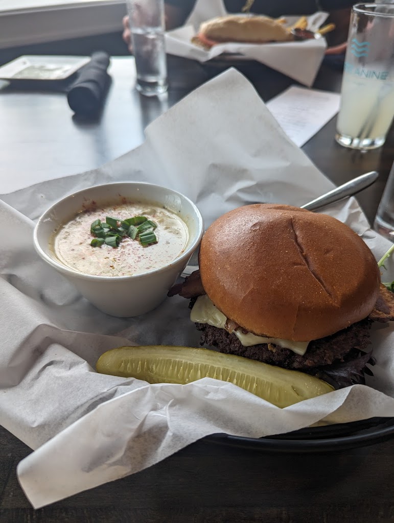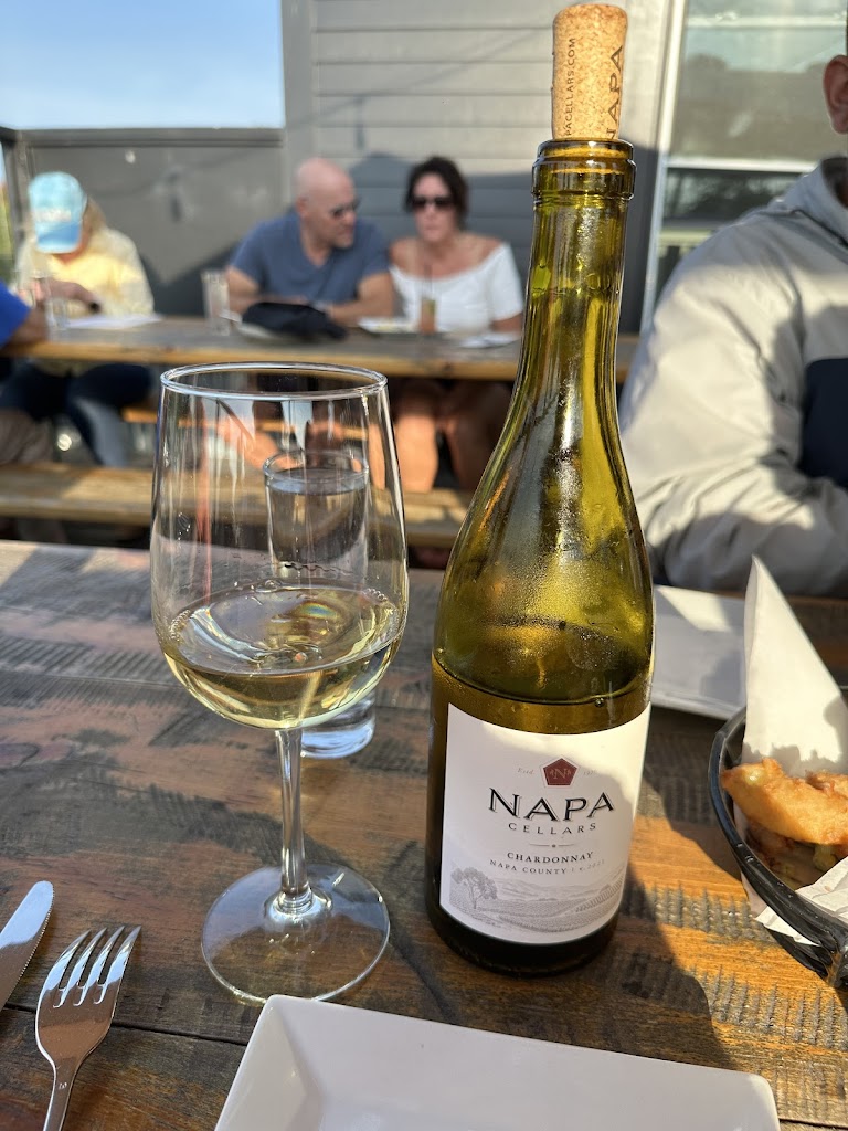 It was a cold windy day, so we ate inside. I had the whitefish sandwich, and it might have been the best fish sandwich I have ever had. Lightly breaded, and really nice garlicky aioli. Can’t speak about much else menu-wise. The service was adequate, and the (inside) atmosphere was loud. But I would go back for that sandwich in a minute.