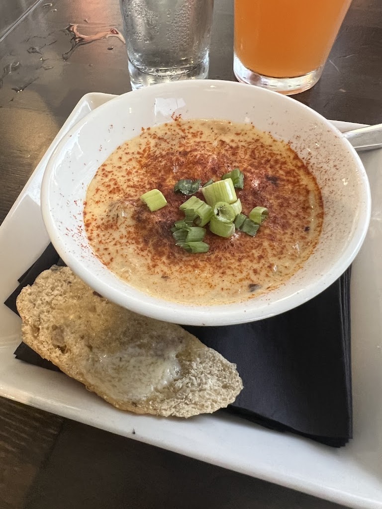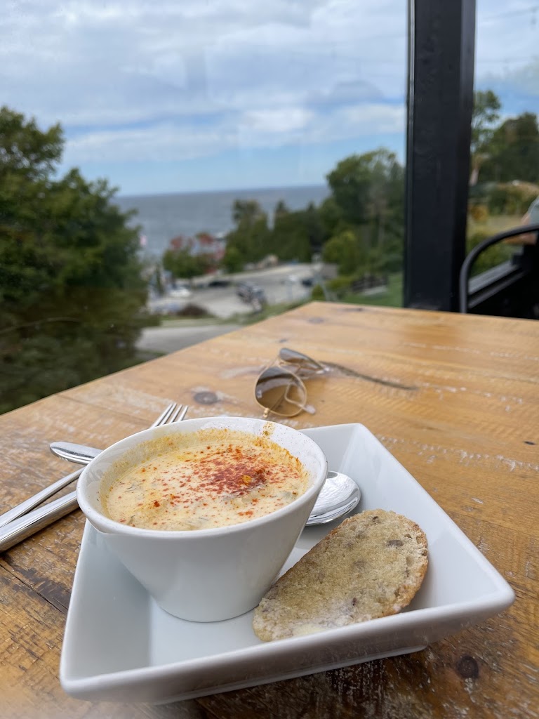 The best chowder in Door!!! Kinda tricky to find if Chocolate Chicken is closed. Door is around the back, follow the arrow. Inside is okay, but rooftop is amazing. Views of the bay, food is good! Full bar, embraces local brews.