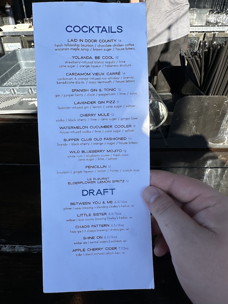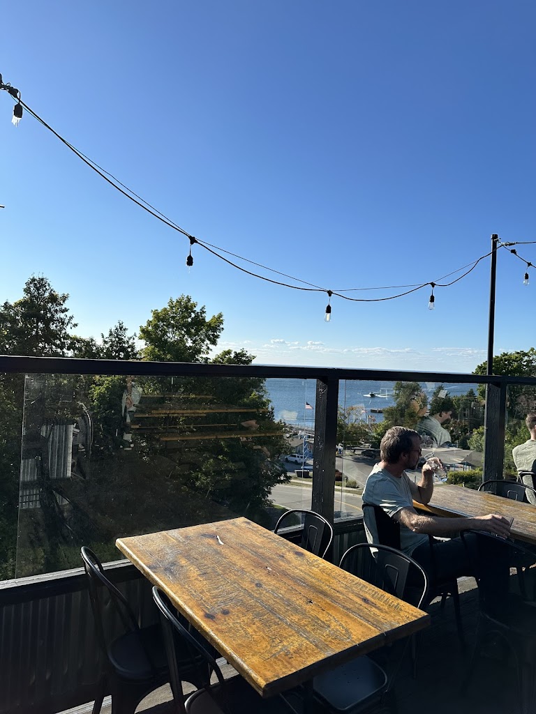 One of our favorite places in Door County - it is amazing! The food is fantastic (they even manage to make basics like mac & cheese and burgers outstanding), drinks are great, staff is awesome (many that we met were from across Europe and were wonderful/made for a cool experience), and the ambiance on the roof is lovely. For us, this is a must-go each trip!