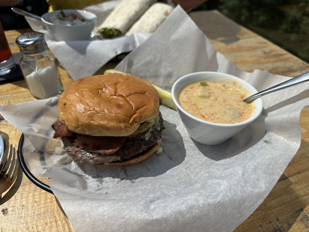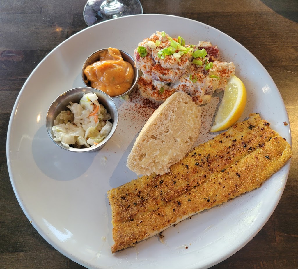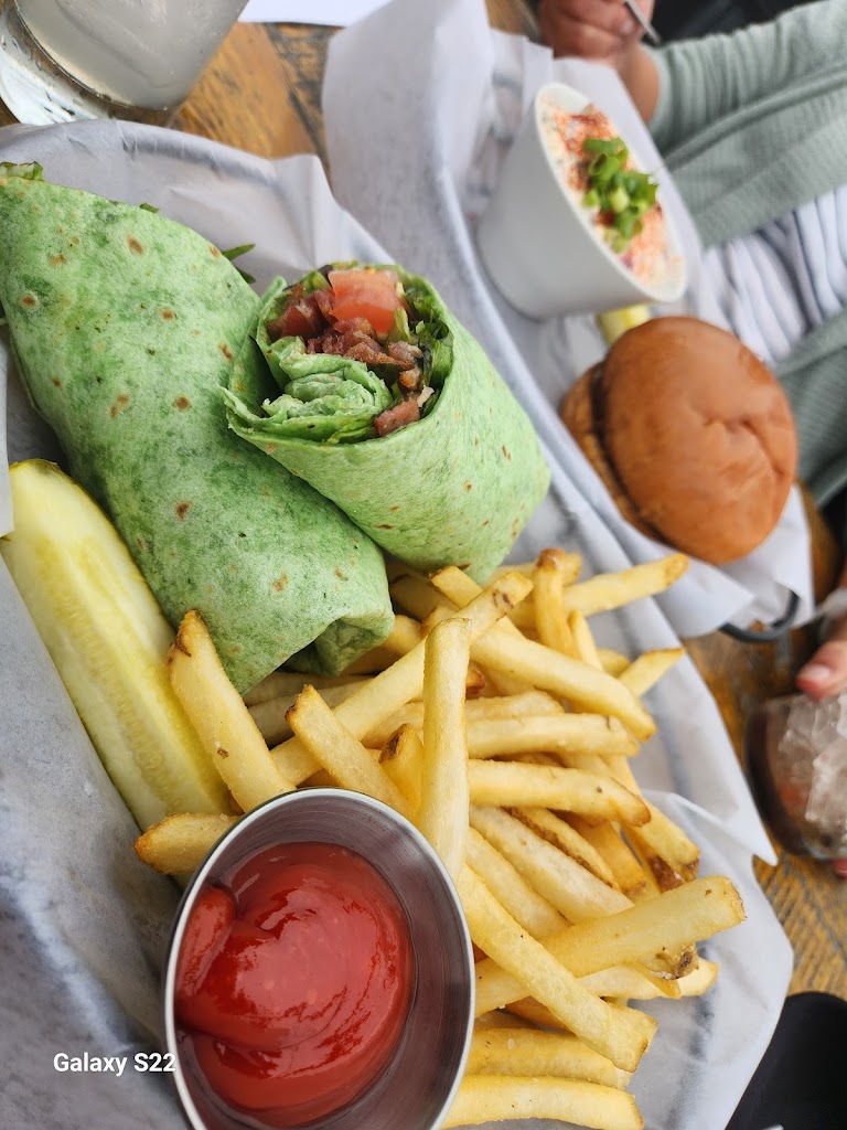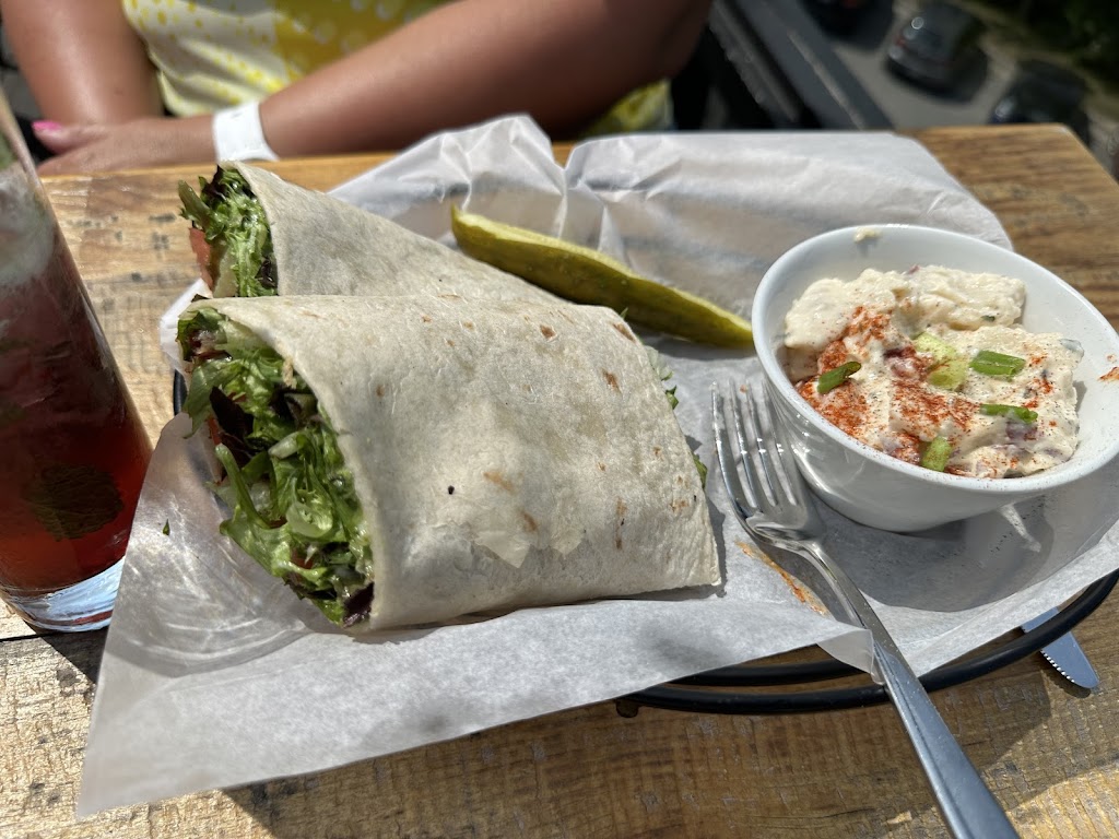 First time visitors and it was wonderful! I had the Whitefish Po' Boy and a Watermelon Cucumber Cooler. My husband had the Nueske's BLT Wrap and a DC Cherry Mule. We each had the potato salad and it's to die for. Both meals were light and refreshing!
