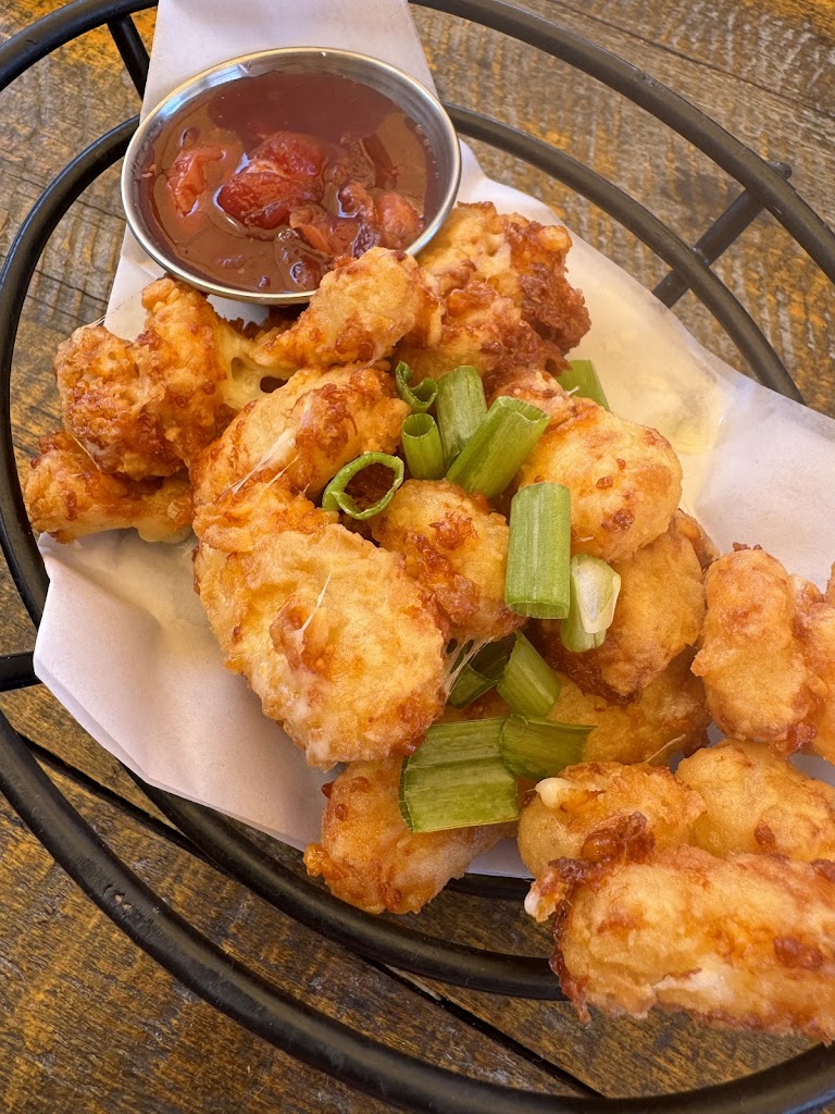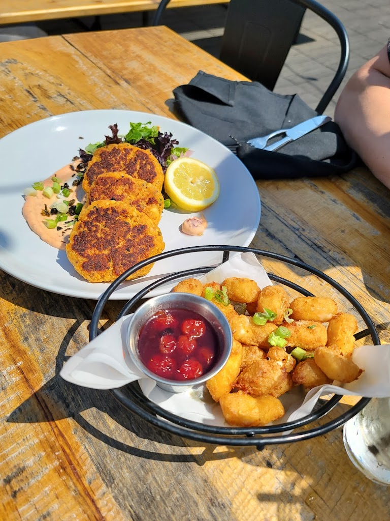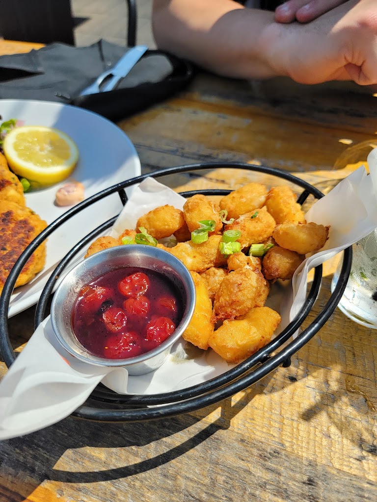 We also tried the cheese curds and fish cakes. We'd recommend both!