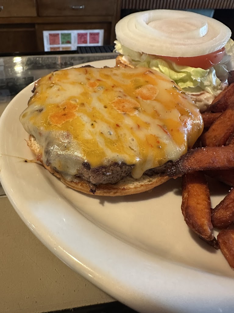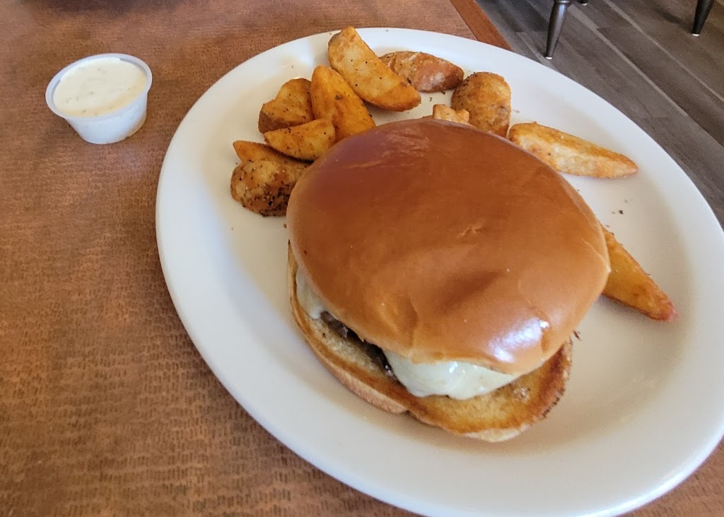 The main course came, and, let me tell you, it's a bad day to have dietary restrictions. The deluxe burger was tender, fresh, and savory. I cleared my plate in 35 minutes, and have no complaints, except that I didn't take a picture to make it last longer.