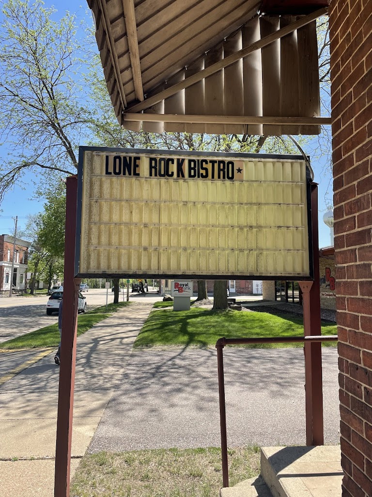 The Lone Rock Bistro is a local business with high-quality food, decent prices, and friendly service. The building's exterior made me unsure of what I might expect; however, the interior of the establishment is a nicely renovated older building. The waiter was friendly and accommodating. I chose the Meditteranean Platter. The mixed greens were fresh, and the hummus was flavorful. My friend chose the baked cod in butter with a baked potato and felt that it was well prepared and flavorful. The Lone Rock Bistro also has a nice selection of beer and mixed drinks. I chose the Unbeatable Margarita, and was very impressed with the high-quality!