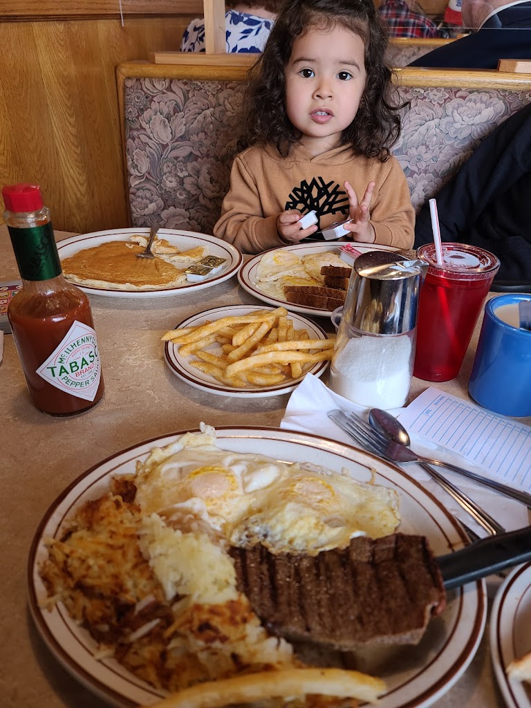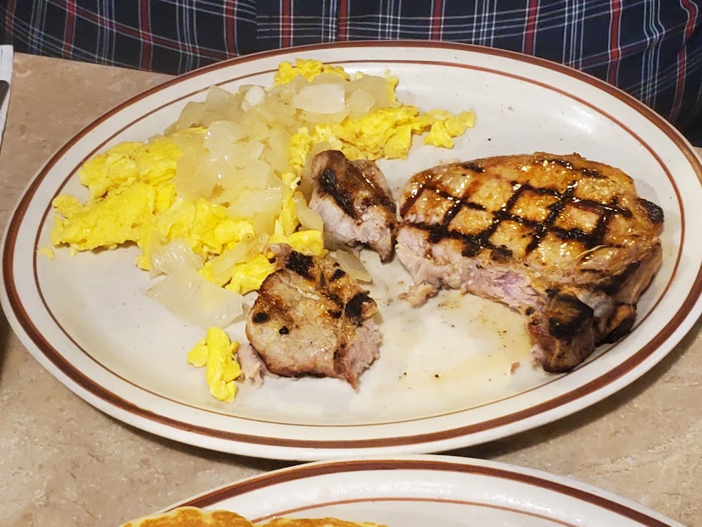Basic family diner. We went in for a late breakfast and enjoyed our meal. There was a gathering or a party going on in the backroom, so the service was slightly delayed. It was busy. I enjoyed my eggs and pork chops, excellent hash browns.