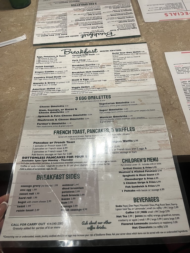 Good breakfast. Friendly service, always love a good mom & pop diner feel.