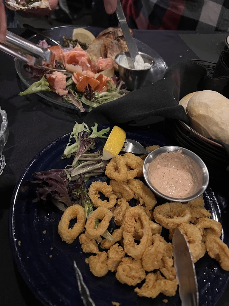 Dined here on a Saturday night with a reservation. Celebrating birthdays for 3 members of our party. Our server, Sam, knew the menu well, answered our questions and provided excellent service. The honey, smoked salmon appetizer was delicious. Calamari was perfectly done, crisp, golden and tender. Both the Ceasar and garden salads were fresh and tasty. The ahi tuna steak was fresh and seared to perfection. Absolutely perfect! The Seafood Basciani, shrimp, scallops and crab was amazing!