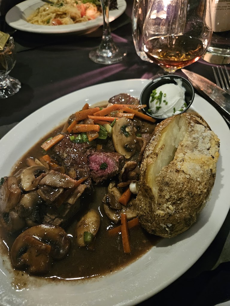 The service was good, waitress was nice. my women's food was good. My steak was like a salt lick. And the meat lacked beef flavor. Would of been acceptable for a lower end restaurant but not $50