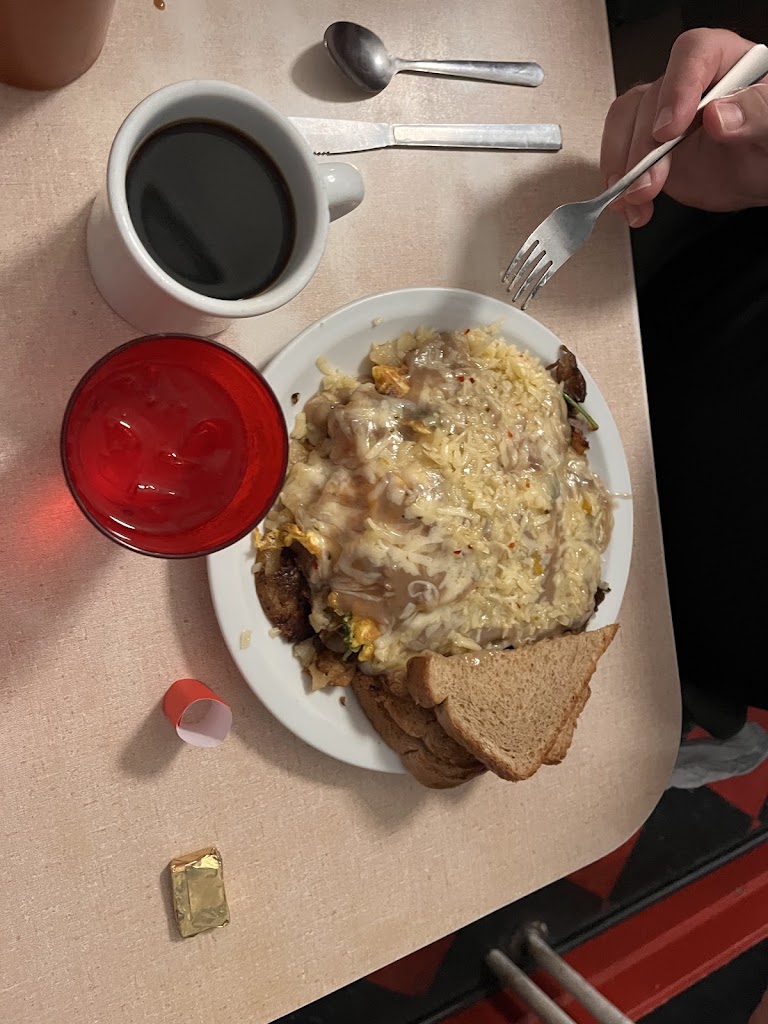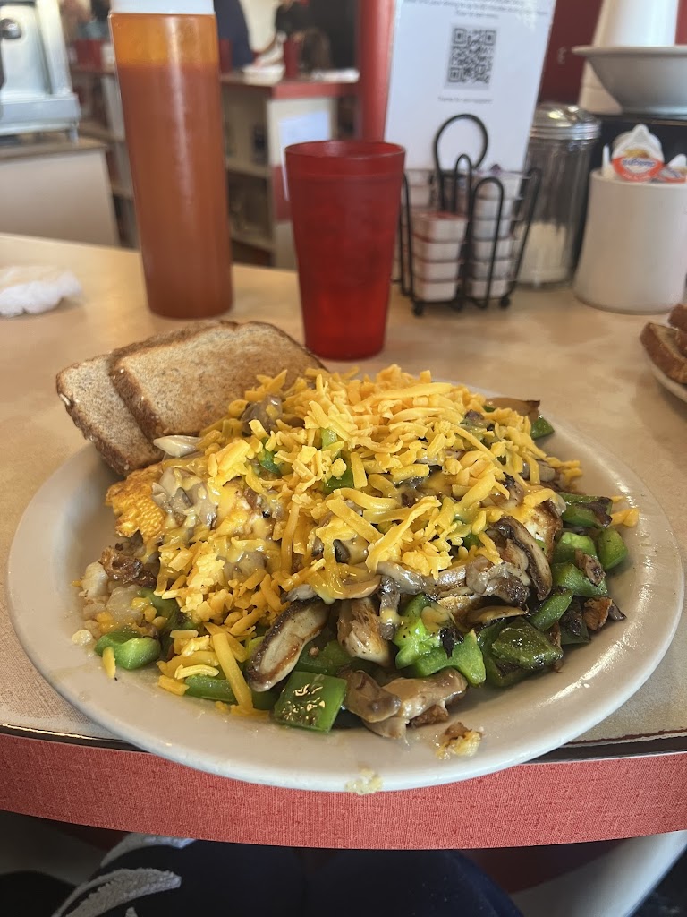 Breakfast oriented, the Scrambler is a load of chow. Good food, good service. Dining area and the seating is spartan - this is a college joint. Prices are very reasonable.