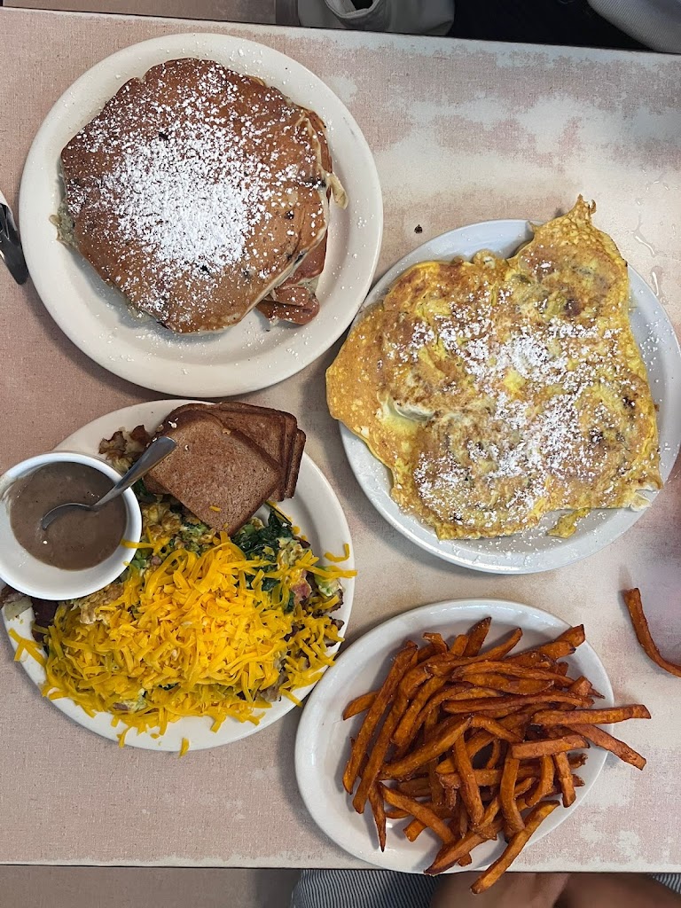 Love this place! We had pancakes, French toasts, a scrambler and an sweet potato fries. Staff is super friendly. Portions are huge. Is cash only but they have an atm on site.