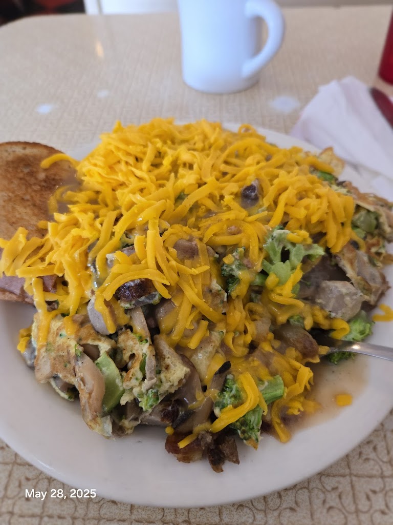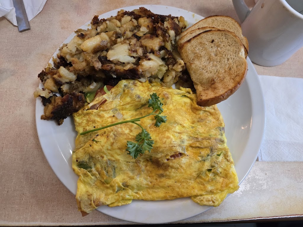 Tasty food. Enjoyed my omelet. Loud atmosphere. Friendly service. Cash only. Would come again.