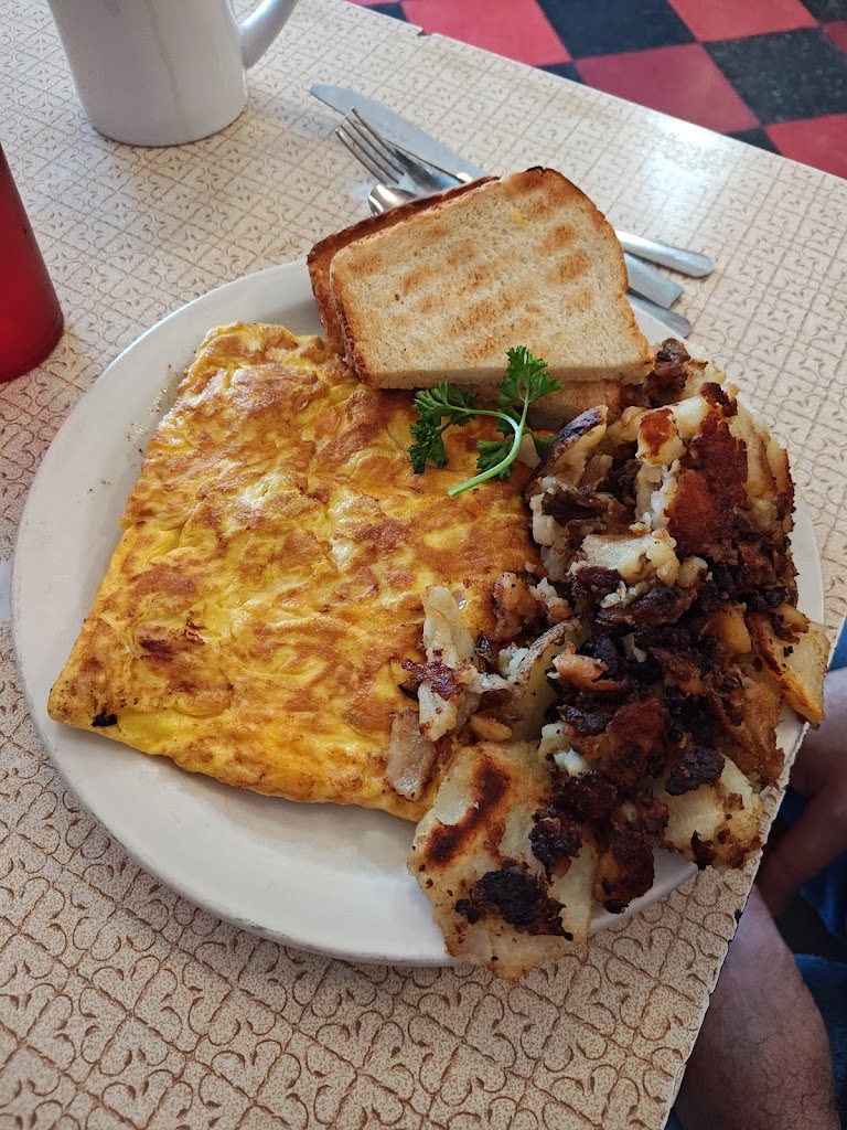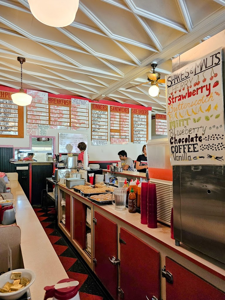 Stopped by on a Thursday morning for breakfast. Very classic 50s diner atmosphere. It felt like home even thought it was my first visit. The food portions are huge and fair on price. Highly recommend!!!