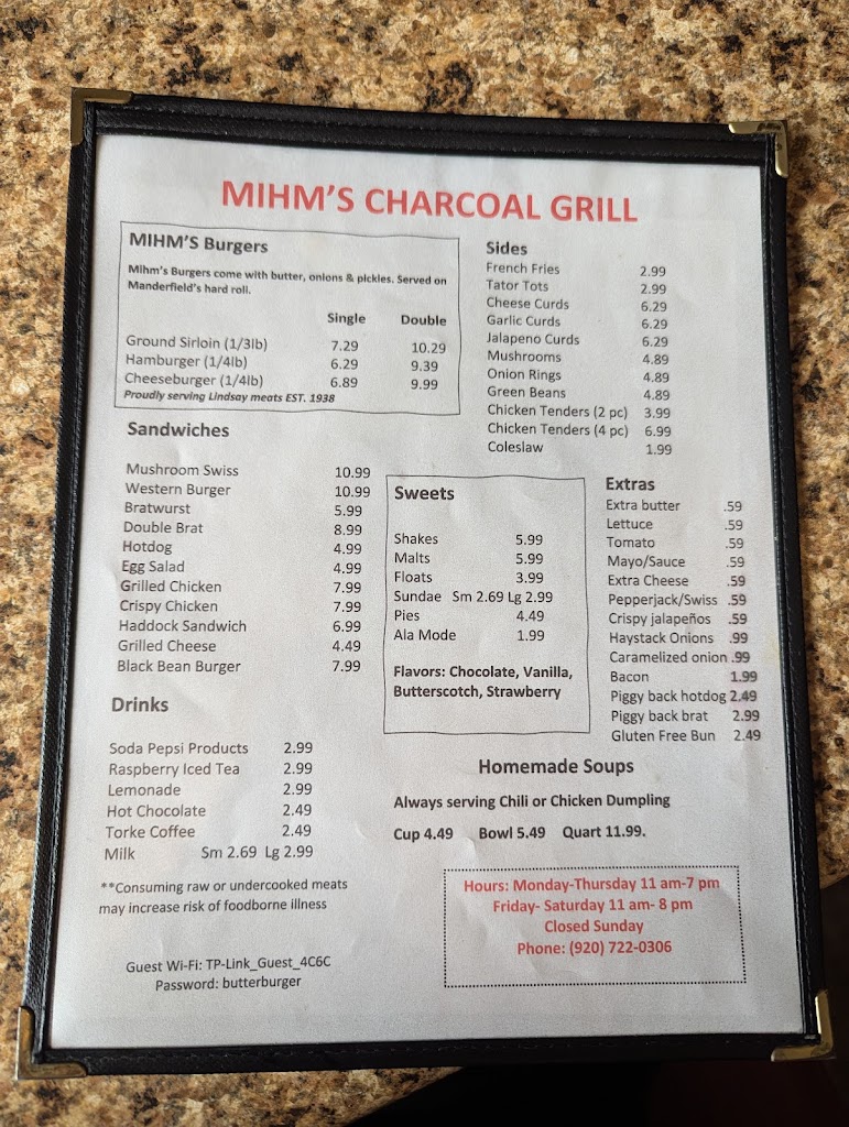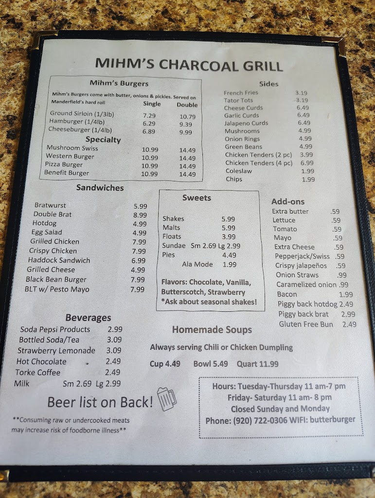 Stopped in Mihm's for the first time and can confidently say it will not be the last time. When you enter it's like you went back in time to an old school diner and I mean that in the best way possible. And the smell hits you immediately. The glorious smell of a charcoal grill. The burger was served simply in wax paper and was amazing. Grilled to perfection and loaded with butter. (There will be a pool of butter forming in the wax paper and it's not a bad thing) The service was great as well, greeted upon entry and treated great. The people working seemed to really enjoy it and that made for a great vibe. Strongly recommend checking this place out and I will be back!