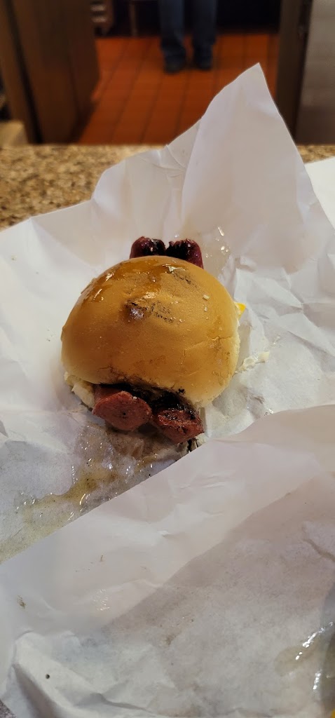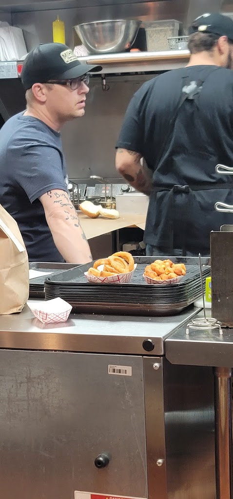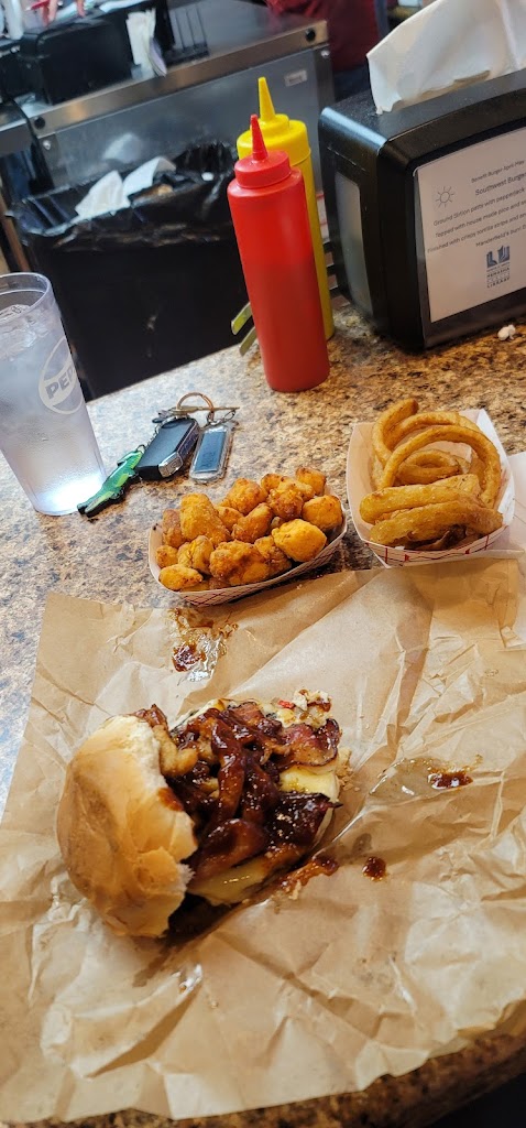 Another fantastic burger joint in Wisconsin! Not a big menu but hard to pick what to get. Yes they really use charcoal in the coolest cook top I’ve ever seen. You can smell the charcoal on the way in. Makes the burgers one of a kind. My son & I both had the BBQ steak burger with an added sausage. Little did we know it was an actual sausage and not a sausage patty. Absolutely fantastic. Our sides were tots & onion rings. The tots were cooked to perfection and the onion rings were the best I’ve ever had. Next time we’re in Green Bay this is a must to return to.