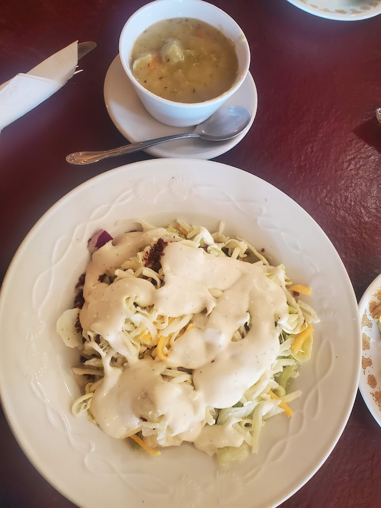 Excellent food, t-bone melts in the mouth tender, and seasoned perfectly. Hubby had prime rib, said it was Excellent. Salad bar real fresh and delicious, soup was great too. Service was great, friendly staff, thank you. 😊