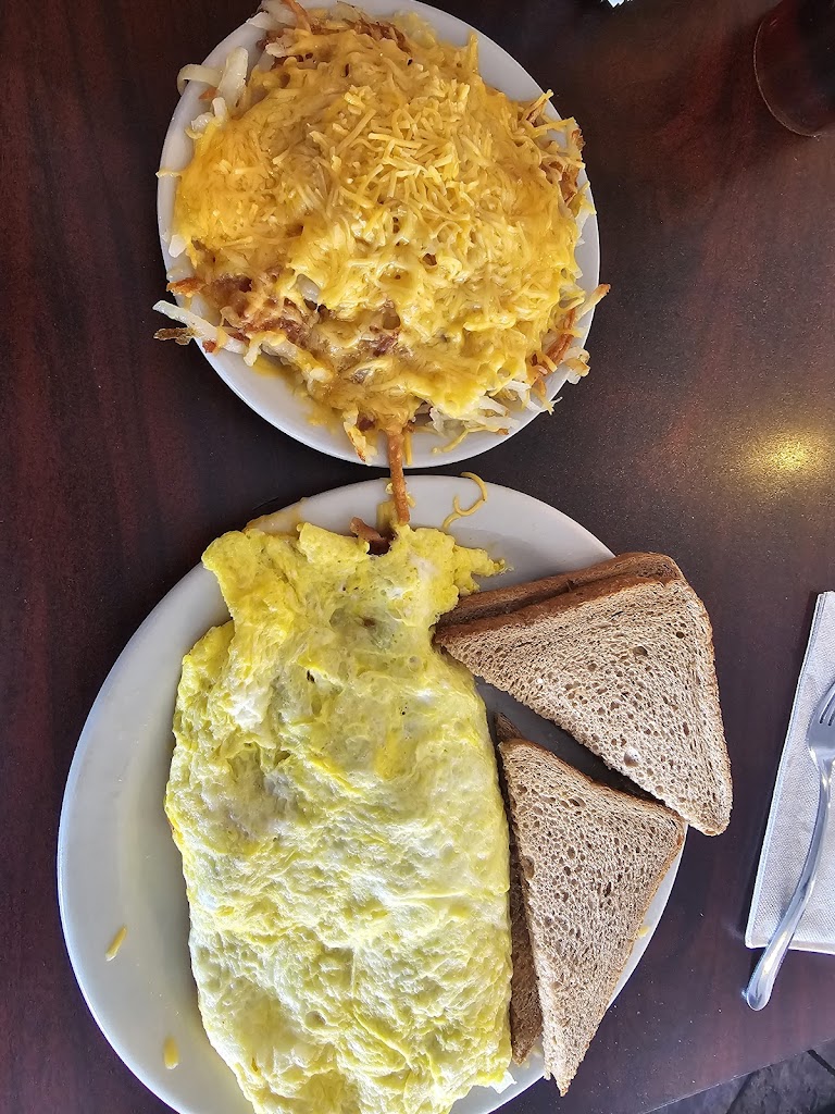 Lunch at a diner. Ample amounts of wholesome food. Friendly service, frequent lunch spot for work day.