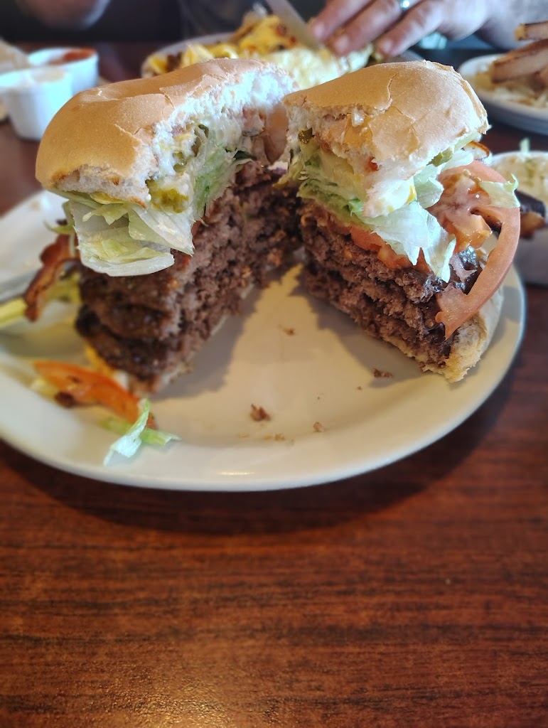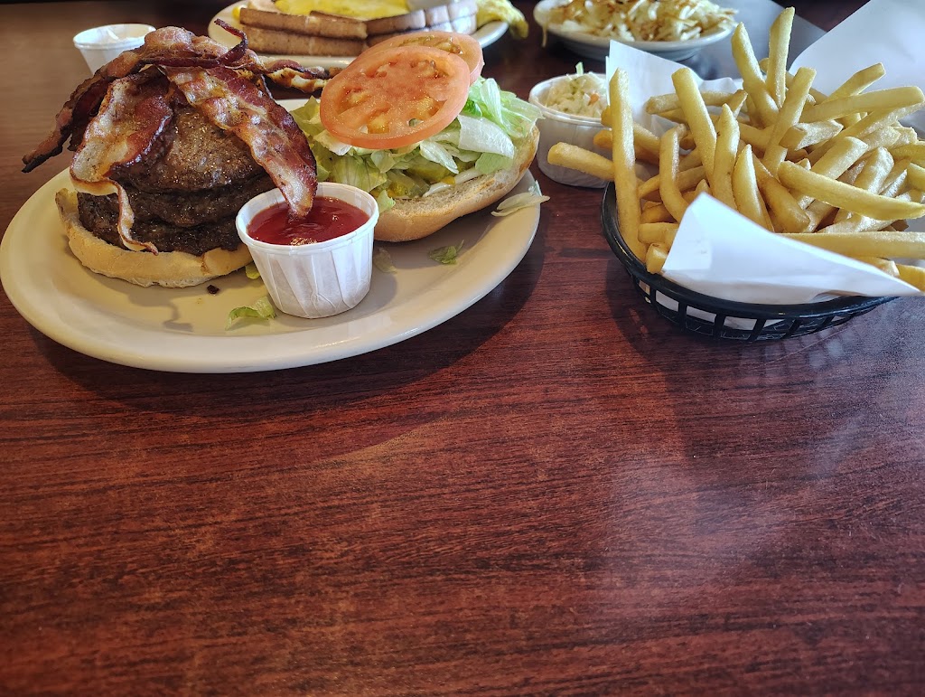 I had the classic burger with fries. My wife had the patty melt with fries. My burger tasted bland like a mc donalds burger. The bun was tastless. My wifes patty melt was very greasy. The fries were tastless. I would suggest a better quality of beef patty and higher quality of bun. Maybe put some salt on the fries. Waitress was however friendly.