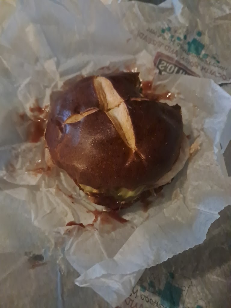 OMG! I just ordered this new pretzel sandwich- talked to the guys making it before and they sold me. I chose the onion and pickle and added jalapeños.