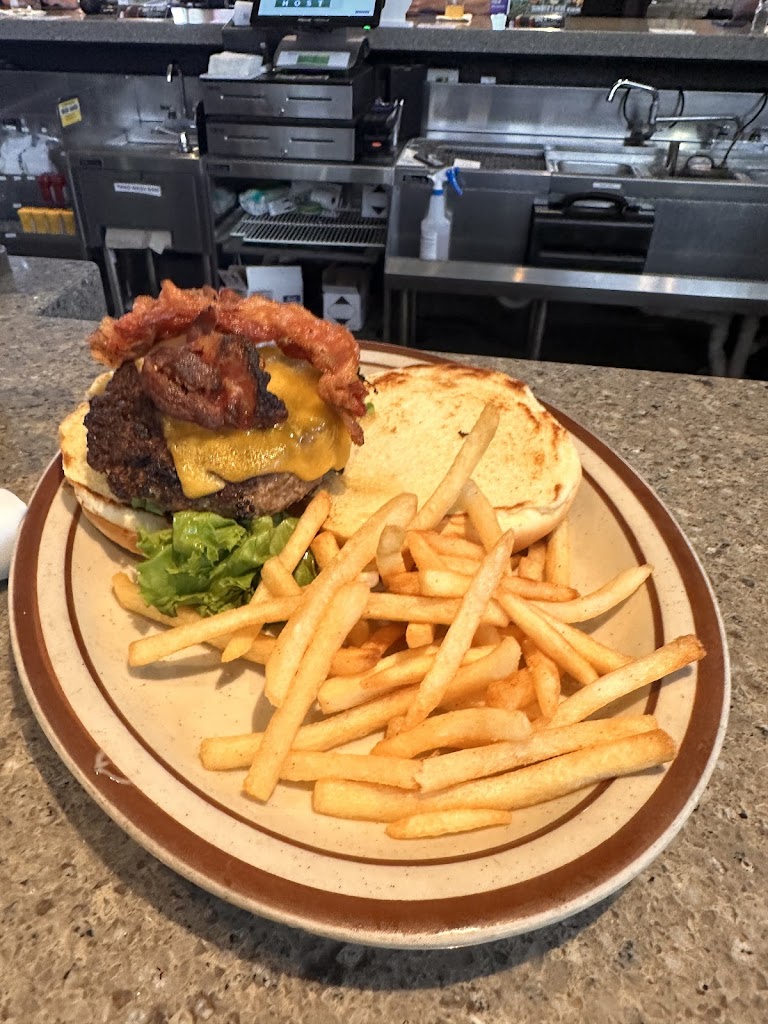 The cheeseburger and fries were extremely satisfying!!! The service was also very good. This was a nice place to sit, grab some food and a drink after a flight.