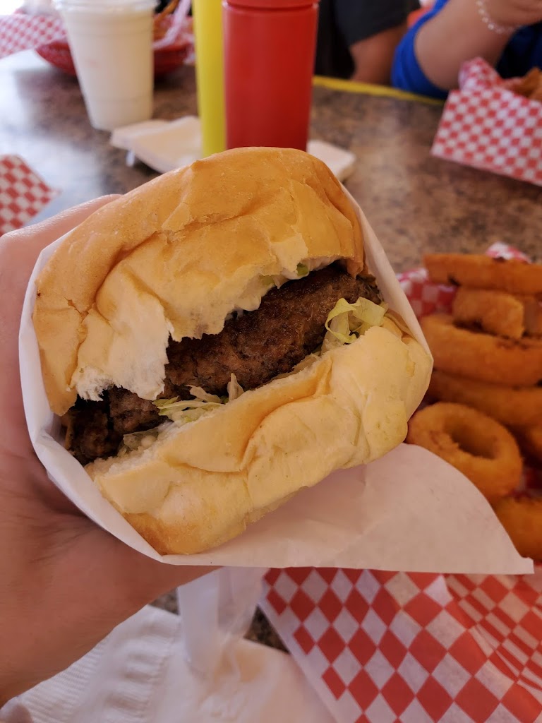 Two downsides to the place: the parking, small lot, and all seating is outside. There's literally no room to expand, so it's totally not their fault and they're a drive in, without car side service. If you can find a spot, the burgers are excellent and their ice cream is even better. Great staff, well maintained seating area, yummy food.