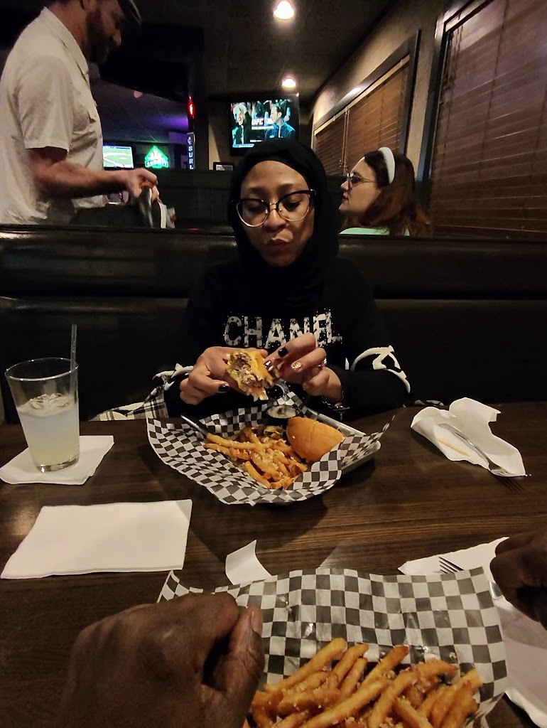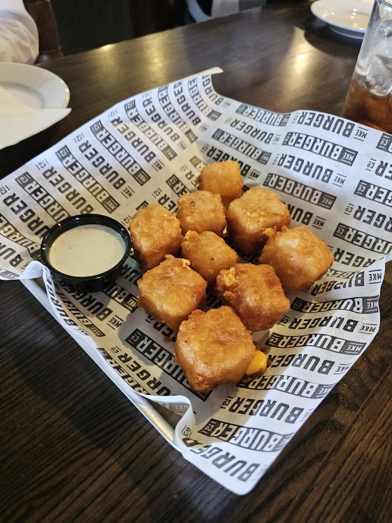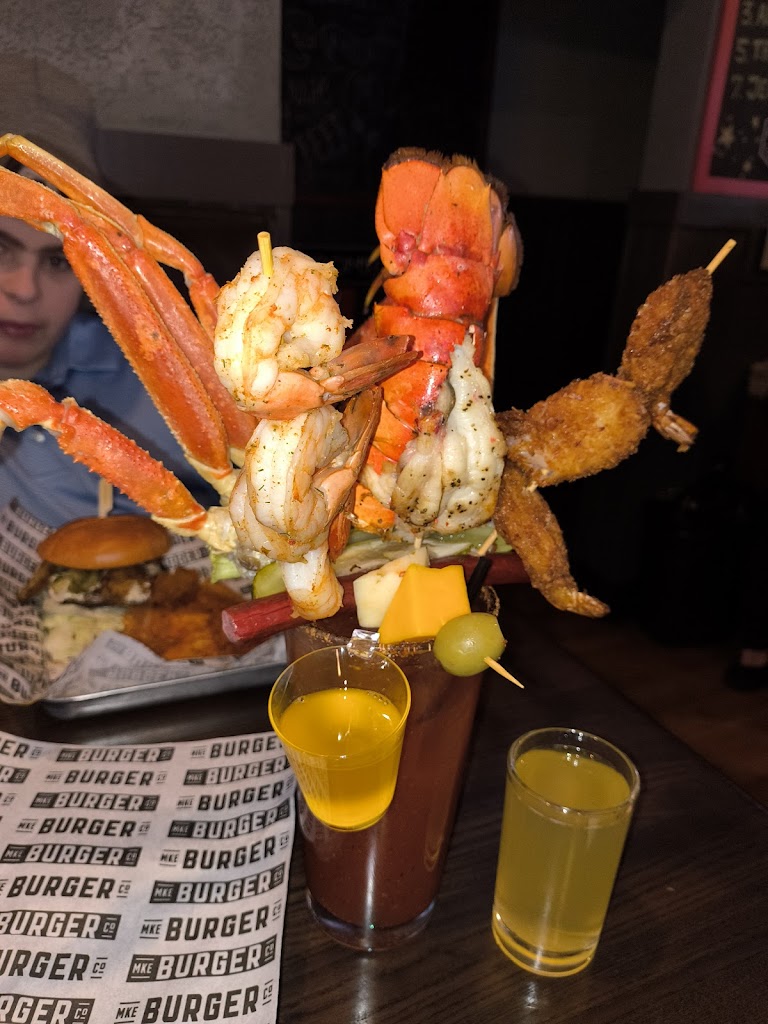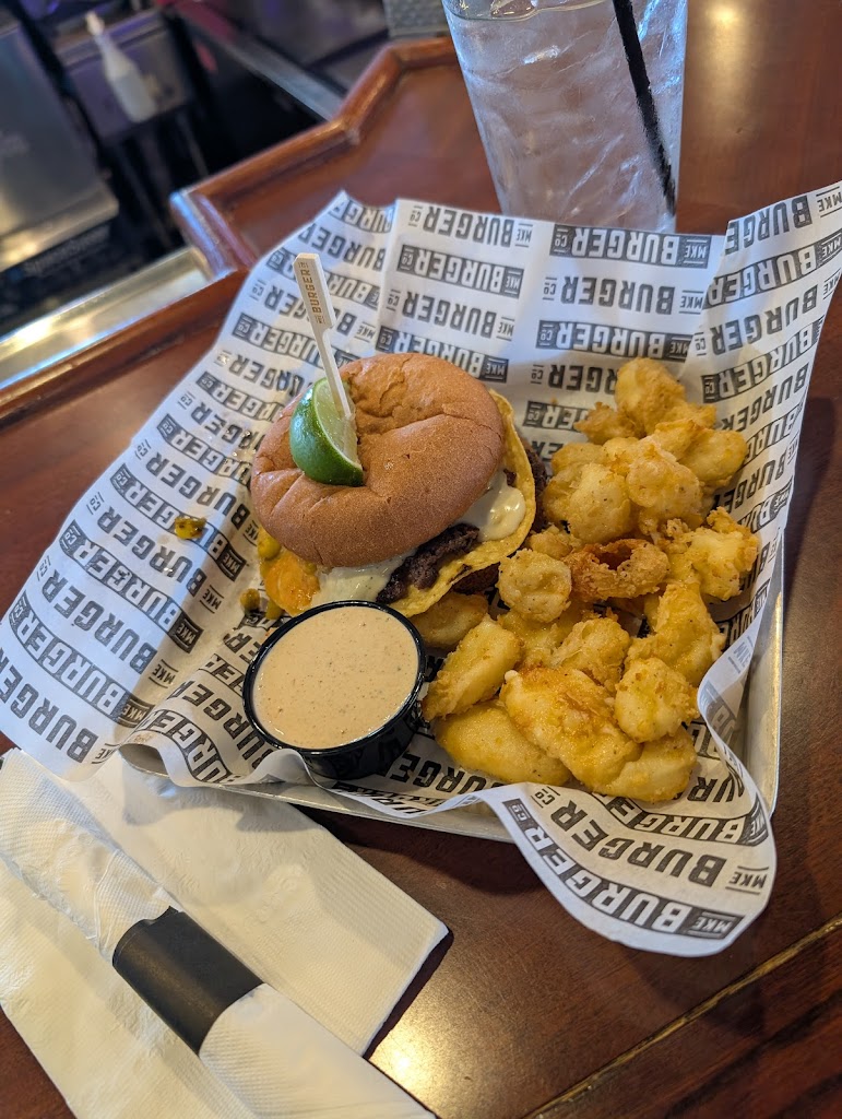 Really good burgers and the curds are to die for! The Bloody Mary’s are very good as well.