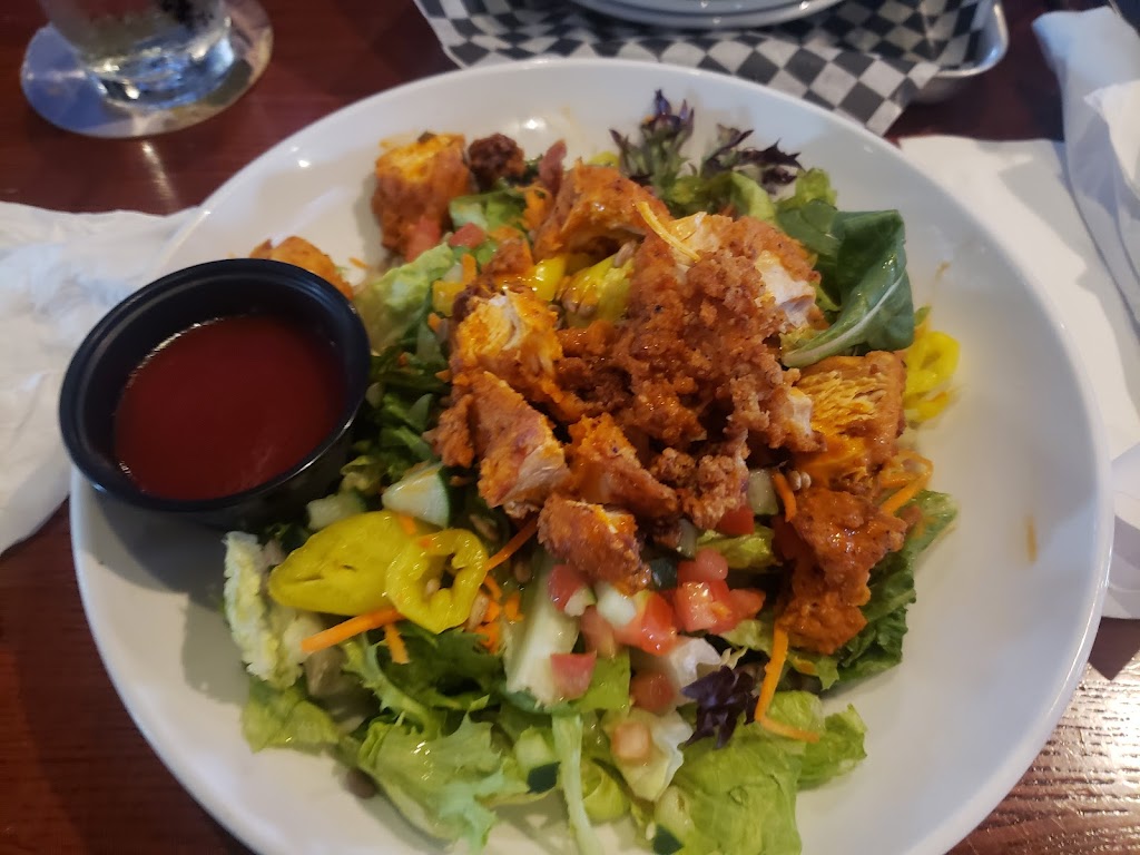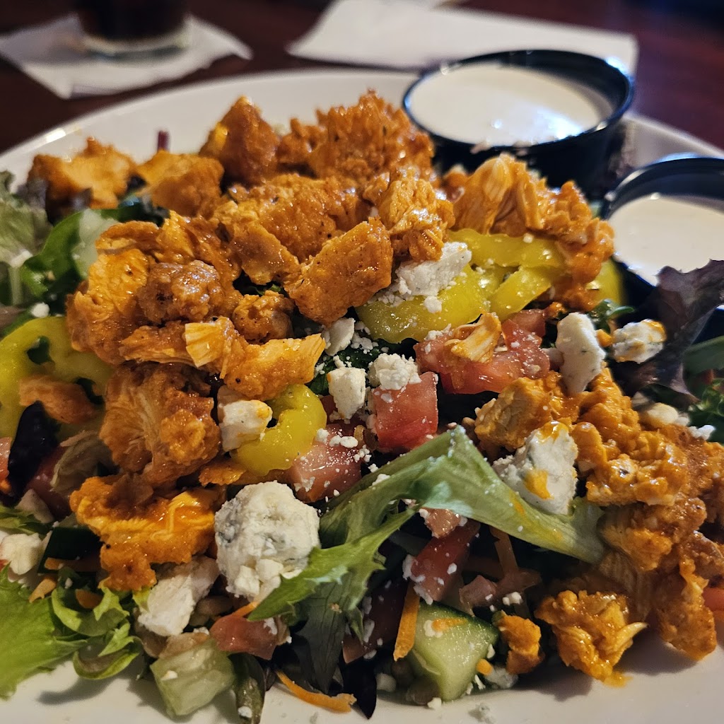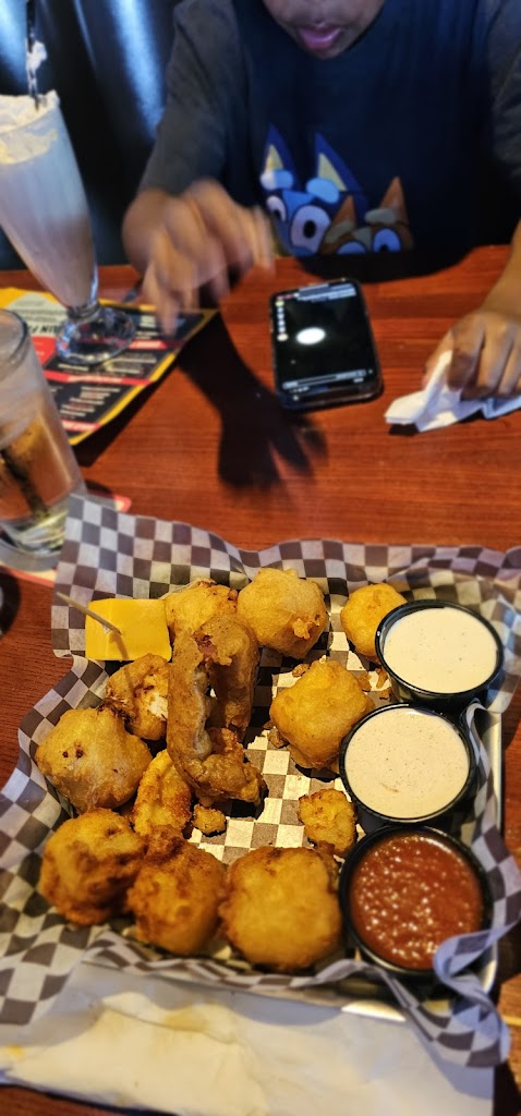 Prices are great. Cheese curds are delicious. Fried brownie bite with vanilla ice cream are very good. It was packed but orders came out quick. Bloody Mary was good. I just wish they had a different BBQ sauce . The buffalo chicken salad was good too. Bathrooms are nice and clean. Kids liked their meals. For a family of 5 we payed under $100.