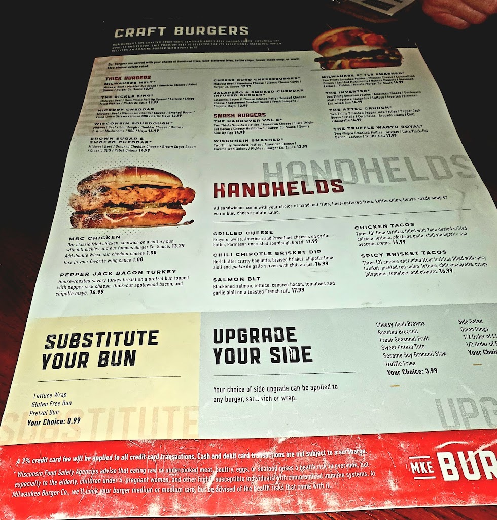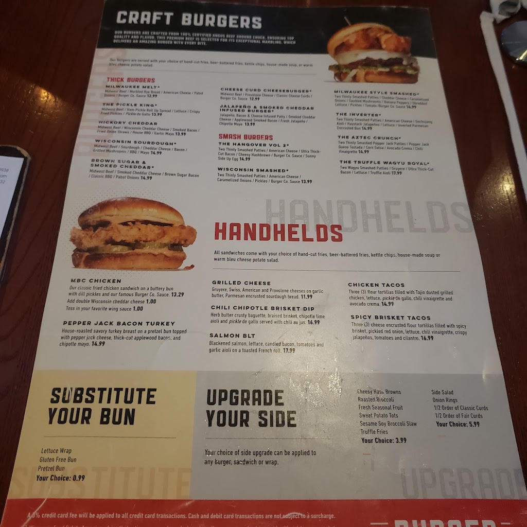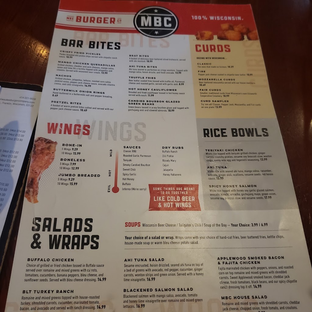 Mistaken this place for chilis but we decided to stay in anyways because we felt the mistake was meant to happen and believe me it was ! Prices were very reasonable. Service was excellent, food on time and such a vibe inside. Thank you Mke Burger co for the excellent food. Thank you for also having good waitresses who are patient and recommended things on the menu we will definitely be back.